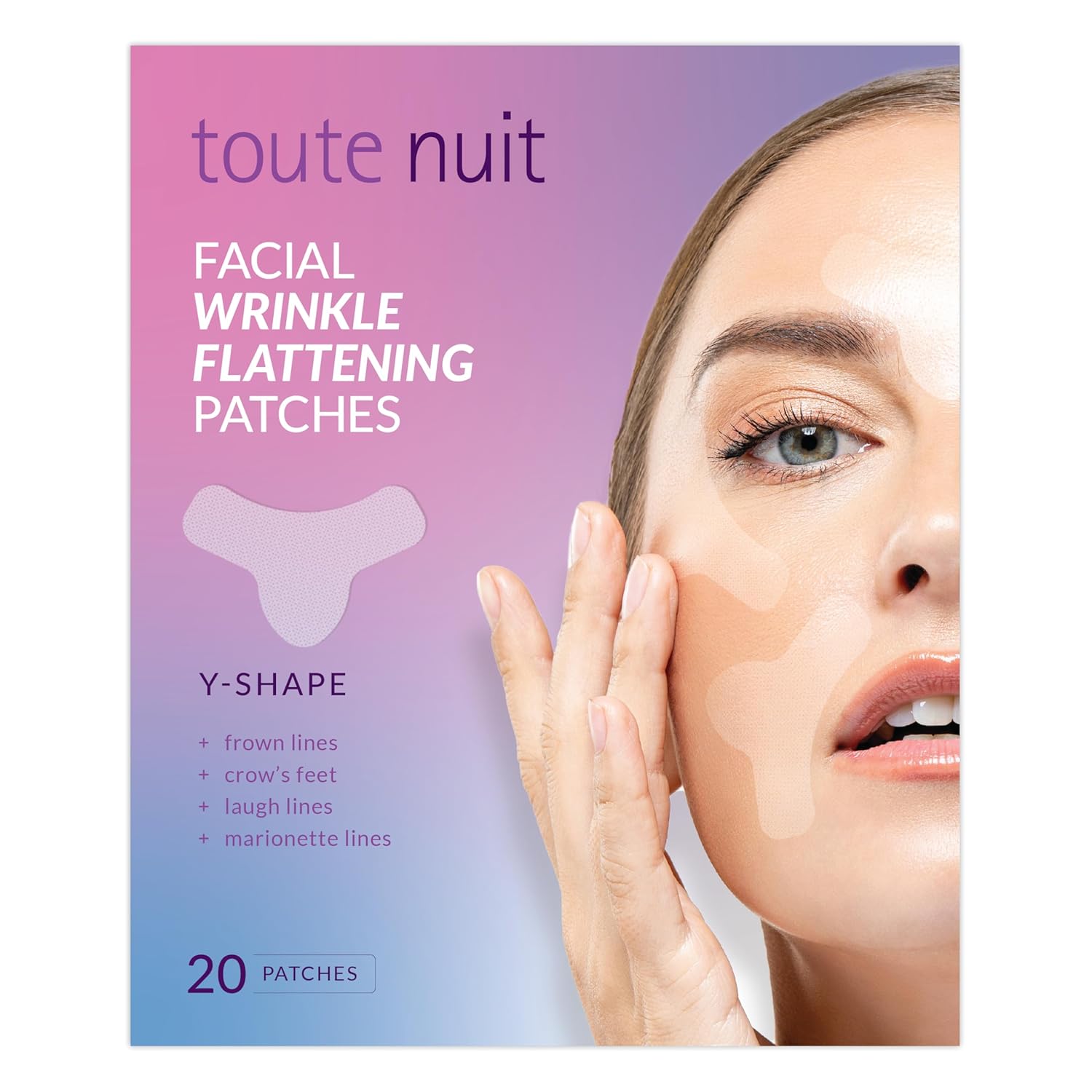 Toute Nuit Wrinkle Patches – Y Shape – Face Tape for Forehead, Between the Eyes & Around Mouth – Hypoallergenic Anti Wrinkle Patches – 20 Count, Made in USA