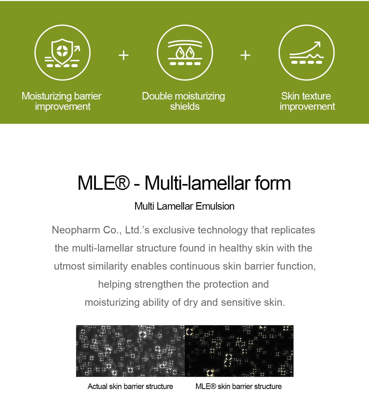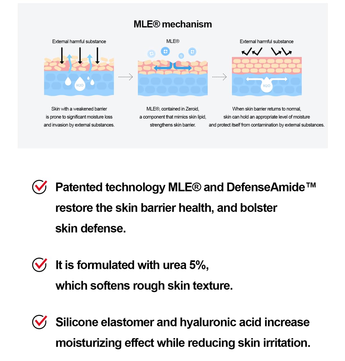 - Patented MLE technology strengthens skin barrier function