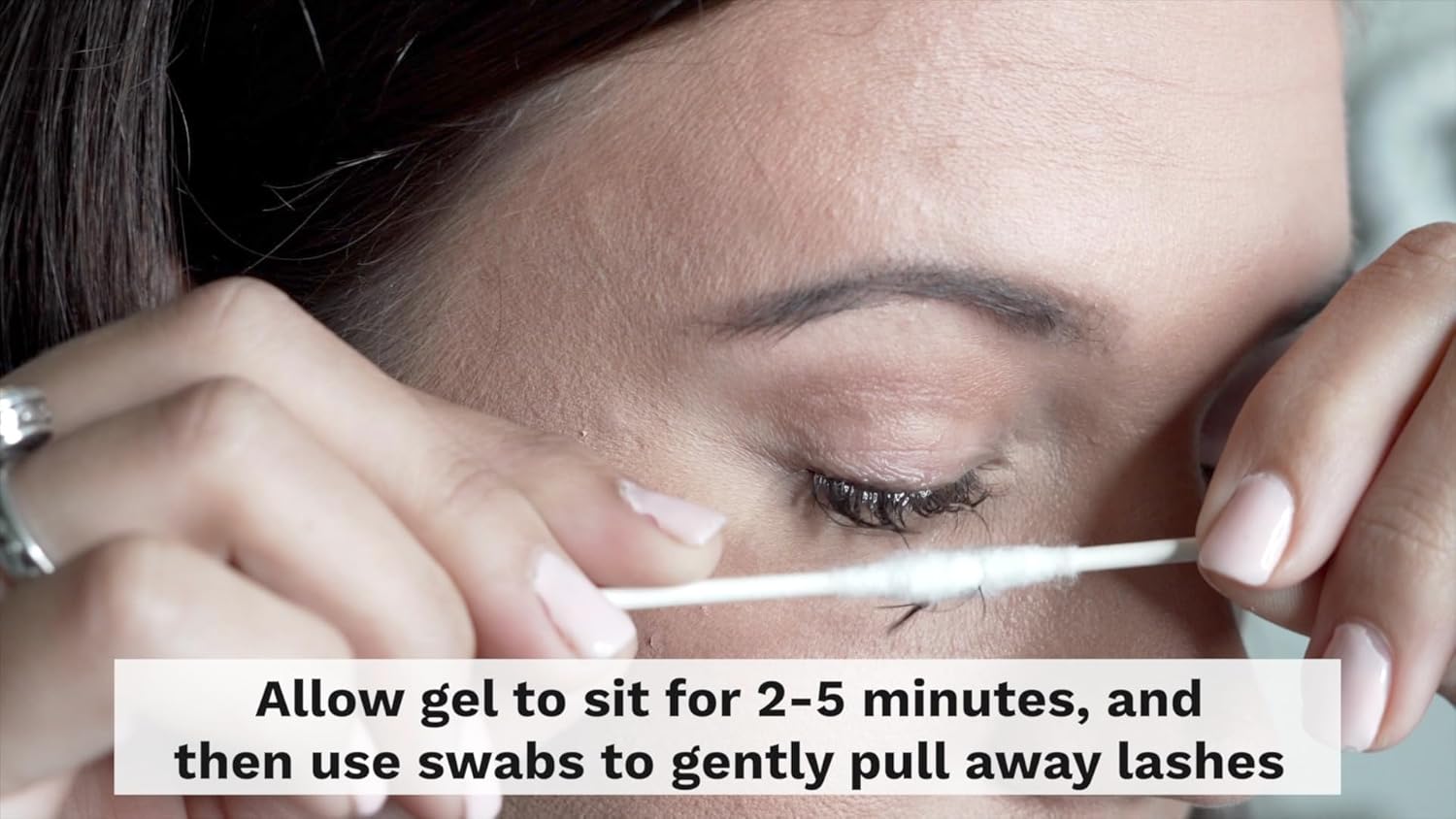 - Apply ยฝ mm Above Eyeline - Apply our eyelash extension gel remover slightly above the eyeline and be sure not to get any in you or your clients. If the eyelash remover gel gets into eyes, you must rinse eyes immediately with warm water to flush out any eyelash gel remover.
