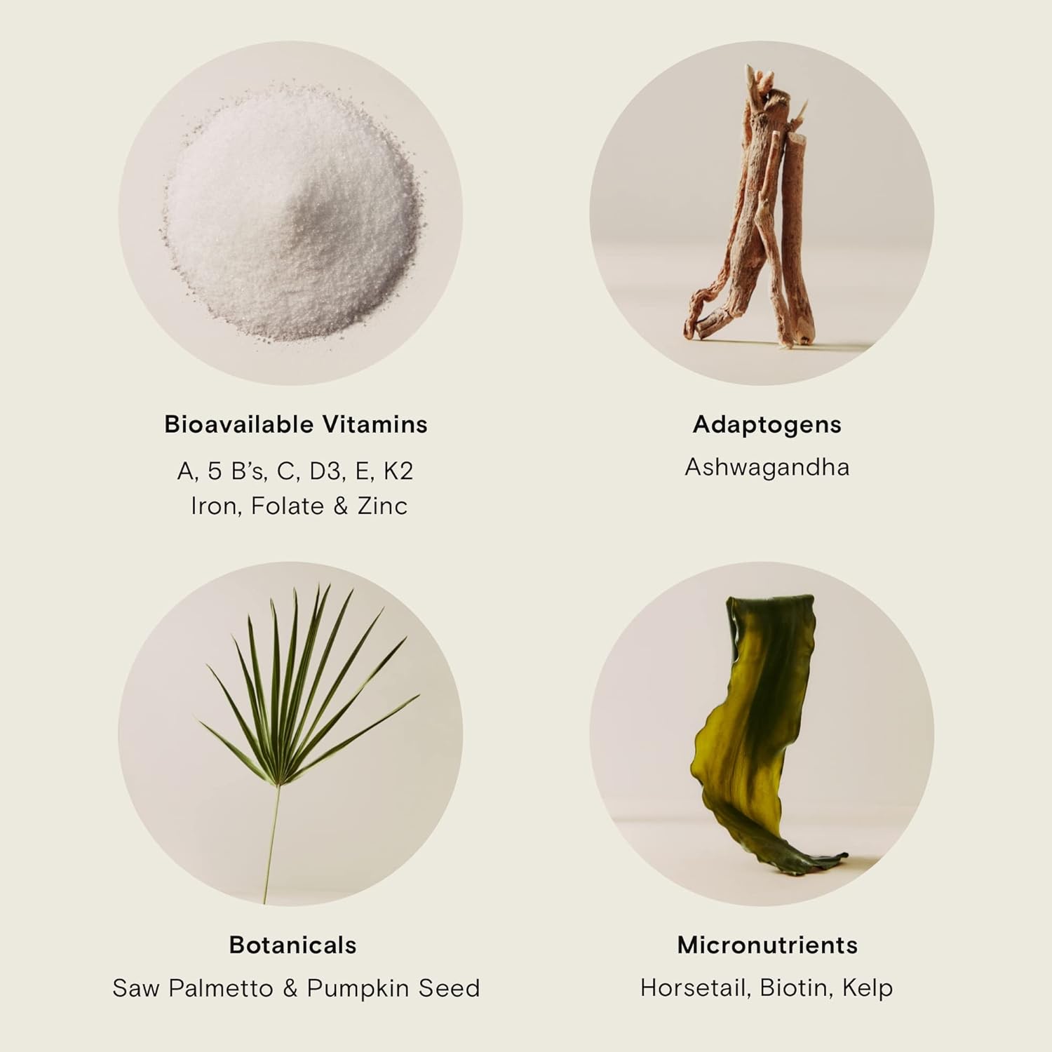 - Clinical Strength Blend - Adaptogens like Ashwagandha help balance stress hormones that contribute to thinning and hair loss. Botanicals like Saw Palmetto support healthy hair and promote thickness, and micronutrients promote hair strength and texture.