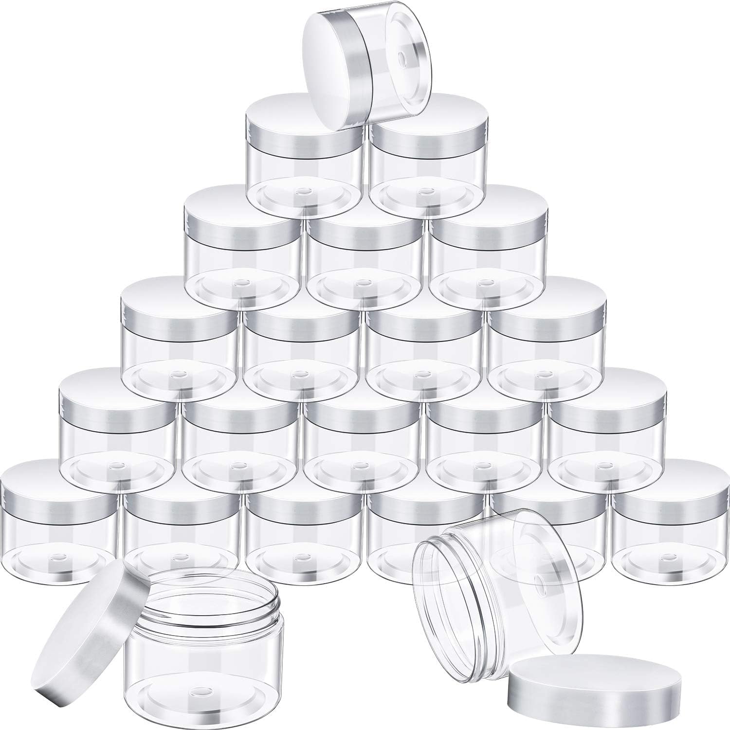 SATINIOR 24 Pieces Empty Clear Plastic Jars with Lids Round Storage Containers Wide-Mouth for Beauty Product Cosmetic Cream Lotion Liquid Butter Craft and Food (Transparent Lid, 1 oz)