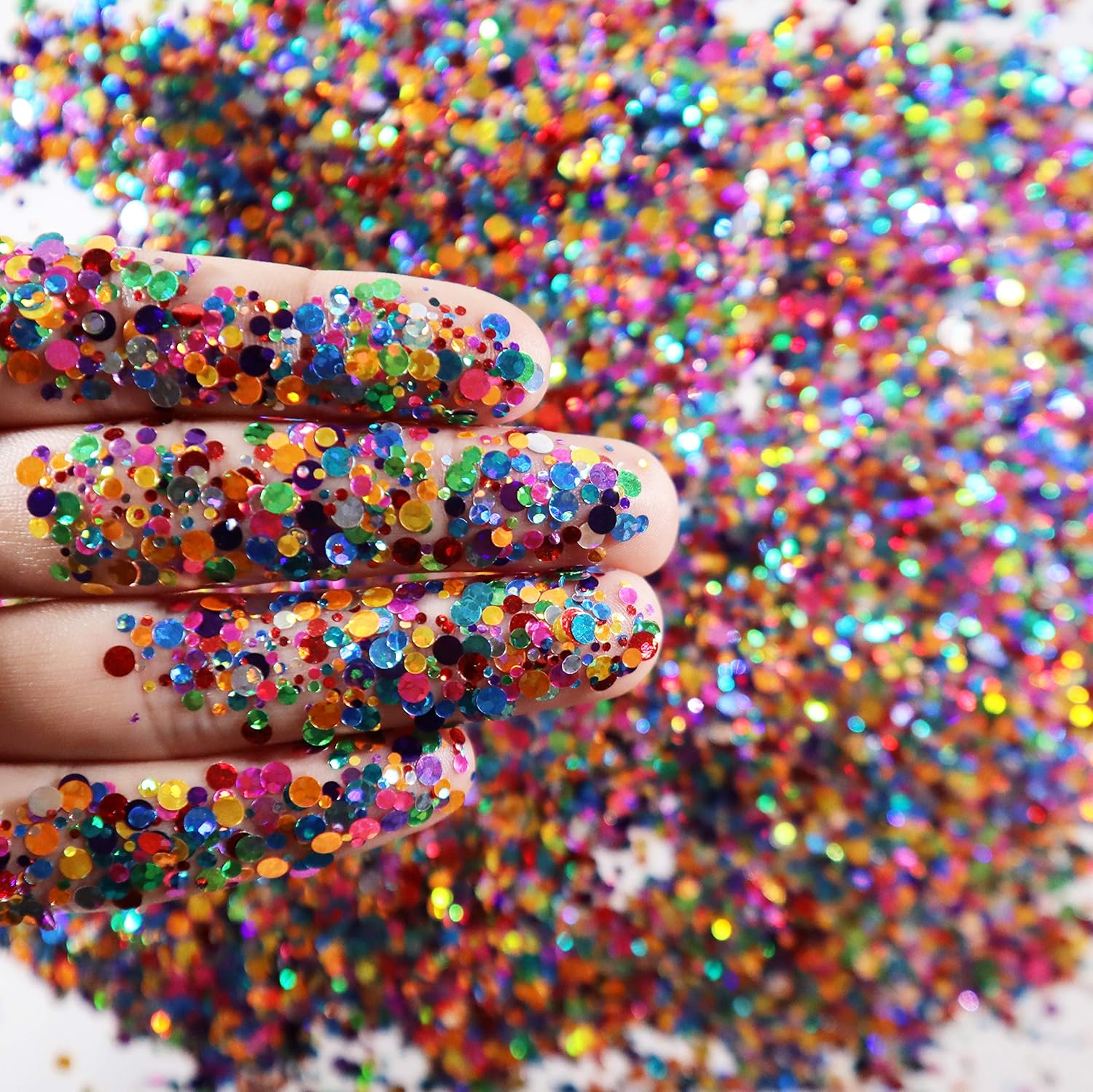 Metallic Rainbow Circles - Face & Body Glitter - Cosmetic Grade Chunky Glitter - Uses Include: Festival Rave Makeup Face Body Nails Resin Arts & Crafts, Resin, Tumblers, Bath Bombs - Solvent Resistant