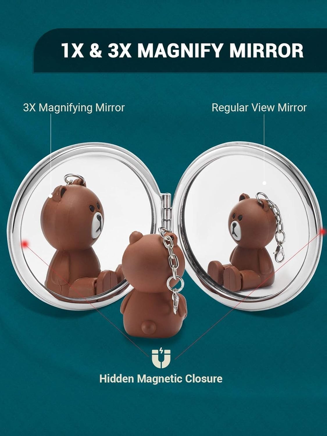 - 1X & 3X MAGNIFICATION: Two mirrors meet all your needs for cosmetic usage. The regular mirror is ideal for observing the entire face, while the 3X magnifier works great for mascara, tweezing and plucking, flossing etc