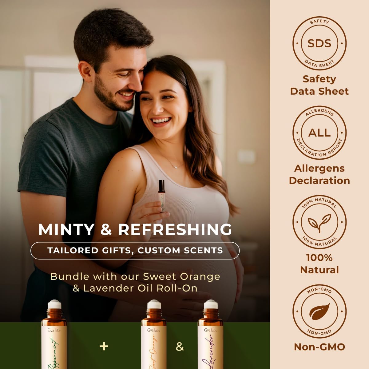Gya Labs Peppermint Essential Oil Roll On - Natural Queasiness Soother for Pregnant Women, 100% Pure Natural Peppermint Oil Roller for Motion Relief, Head Cooling, Pregnancy Must Haves (0.34 Fl Oz)