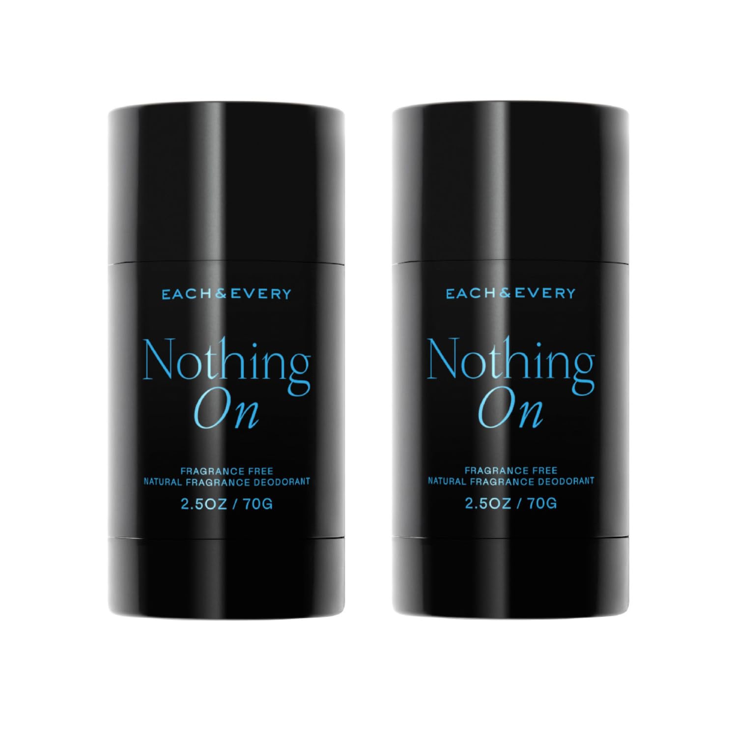 - Nothing On - This release pares it down to our core formula, leaving nothing between us but skin. Plush tapioca starch and conditioning coconut oil also give this sensitive skin deodorant a smooth glide.
