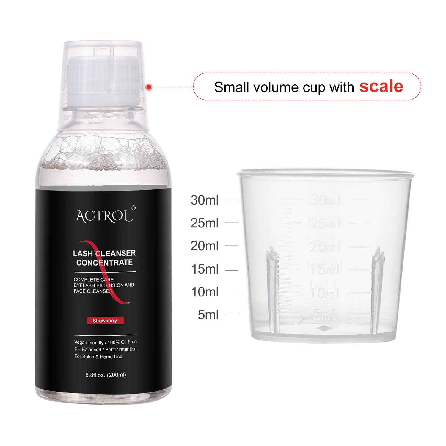 Eyelash Cleanser Concentrate 200ml Strawberry Professional Lash Shampoo Foaming Cleanser DIY Non-lrritating Wash for Extensions Lashes with Salon Home Care-Makes 40 Bottles