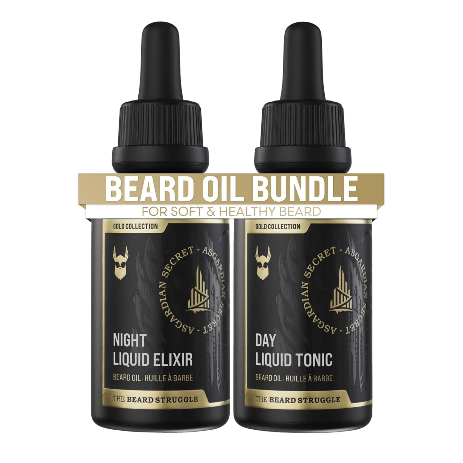 The Beard Struggle Tonic + Elixir Beard Oil Bundle - Gold Collection - Grooming Beard Oil - Softens, Moisturizers, and Strengthens Beard Growth - Pack of 2, Asgardian Secret