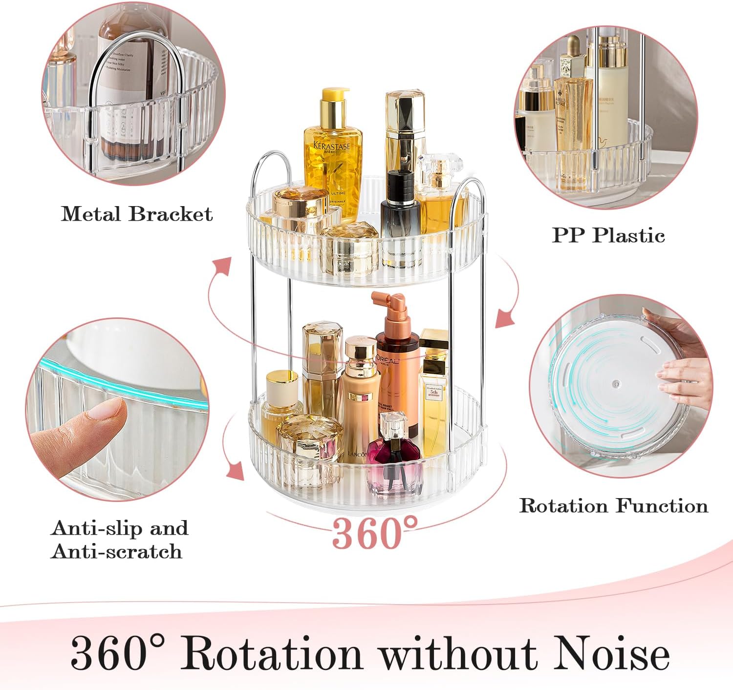 - ❤️ 【360° Rotation Makeup Organizer】ALUYUYO makeup organizer rotation without noisy, it has a stable base that rotates smoothly and makes it easy to access the cosmetics you need in seconds.