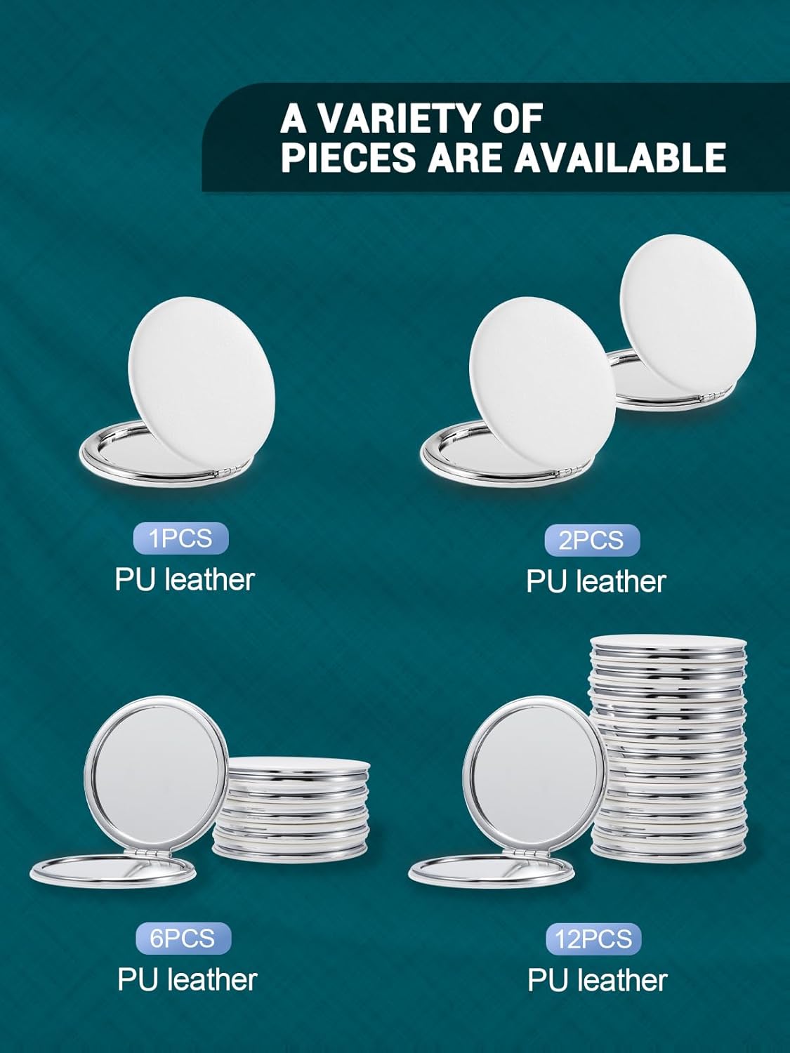 - COMPACT MIRROR: 2.8" diameter round small portable mirror is excellent size for purse and women's pockets. Metal frame(covered by PU) weight 1.8 OZ; it feels a bit heavy in hand, not like a cheaply made one