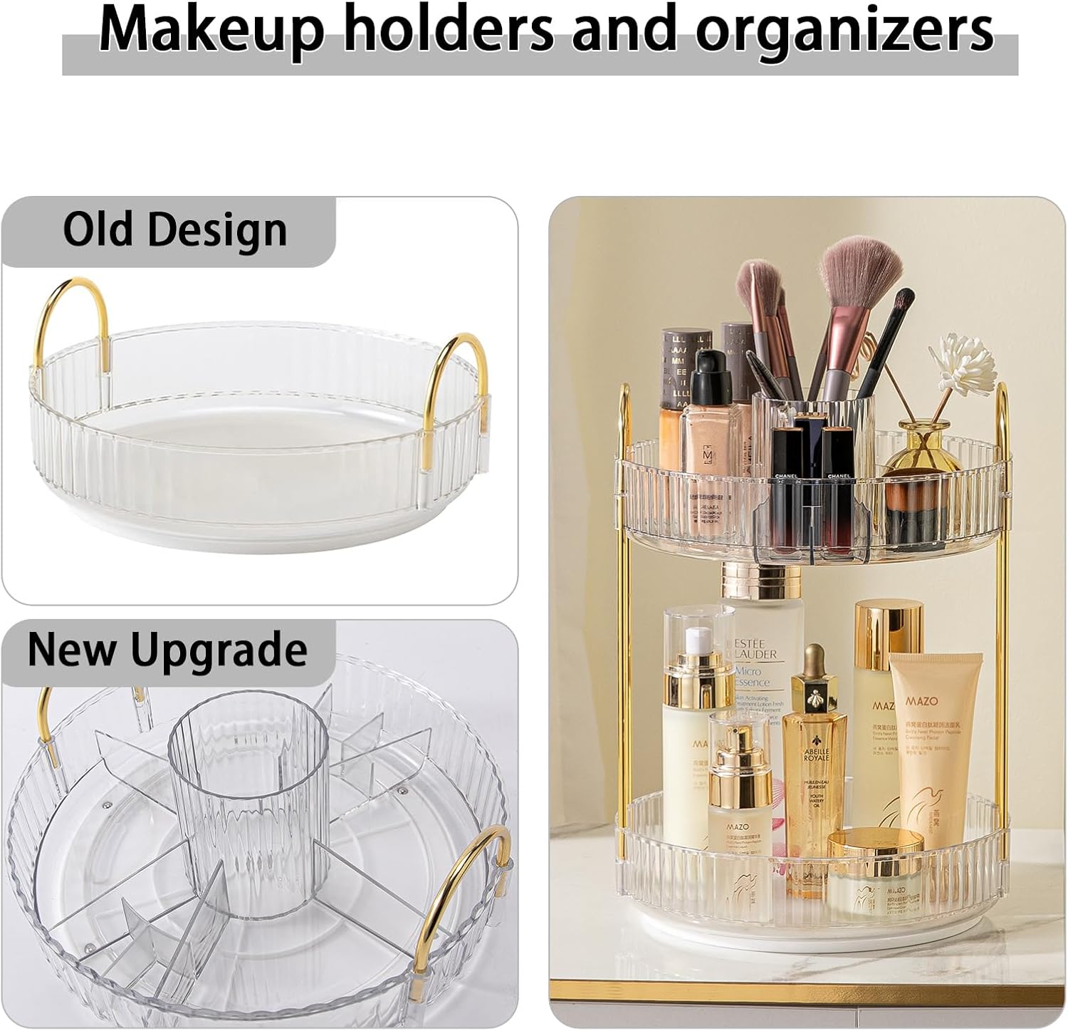 - mooth Rotation: 360 degree rotation makes it easier to find what you need and brings you a convenient using experience. Tray edges are 1.96'' high to ensure that cosmetics do not fall out when