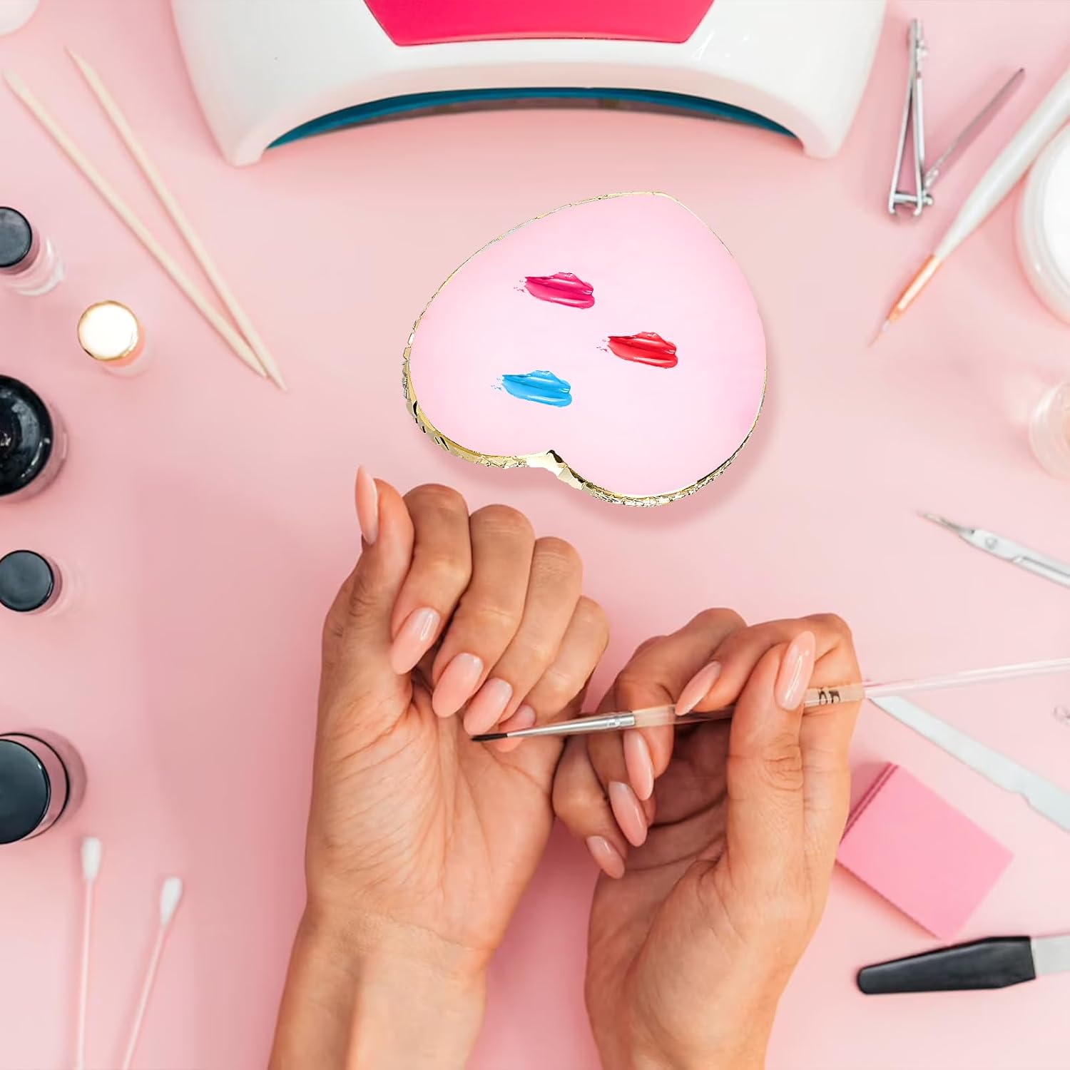 Resin Nail Art Palette Nail Mixing Palette Nail Art Painting Mixed Color Palettes Gold Edge Nail Holder Display Board Cosmetic Mixing Tools (Pink)