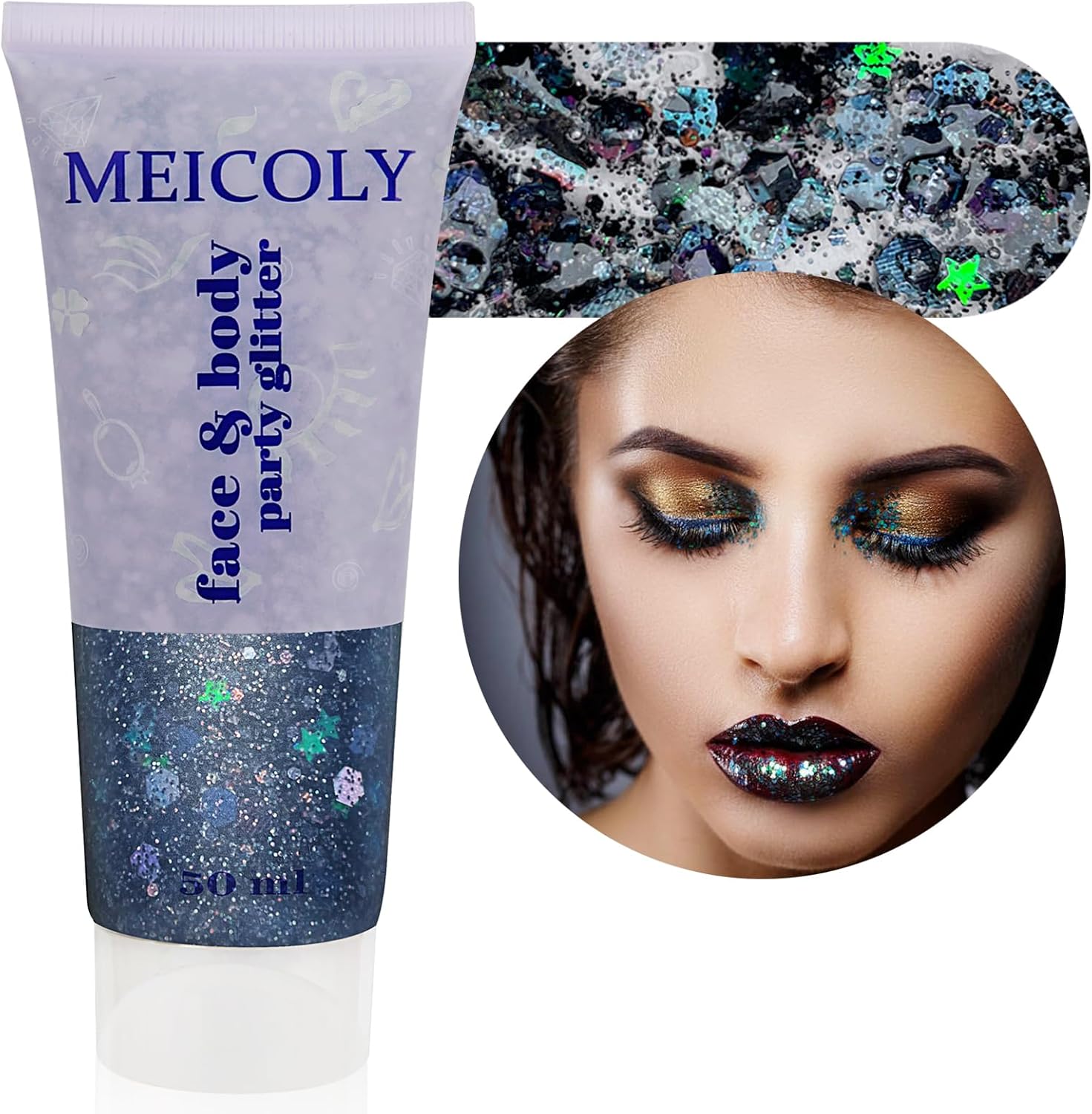- Many Colors Available --- Our holographic body glitter are rich in many colors,large tube contains 50ml body glitter gel. Large number of holographic sequins, the color and shine of the laser sequins vary with the perspective, like a rainbow,make you be the most attractive fan at the singer concerts