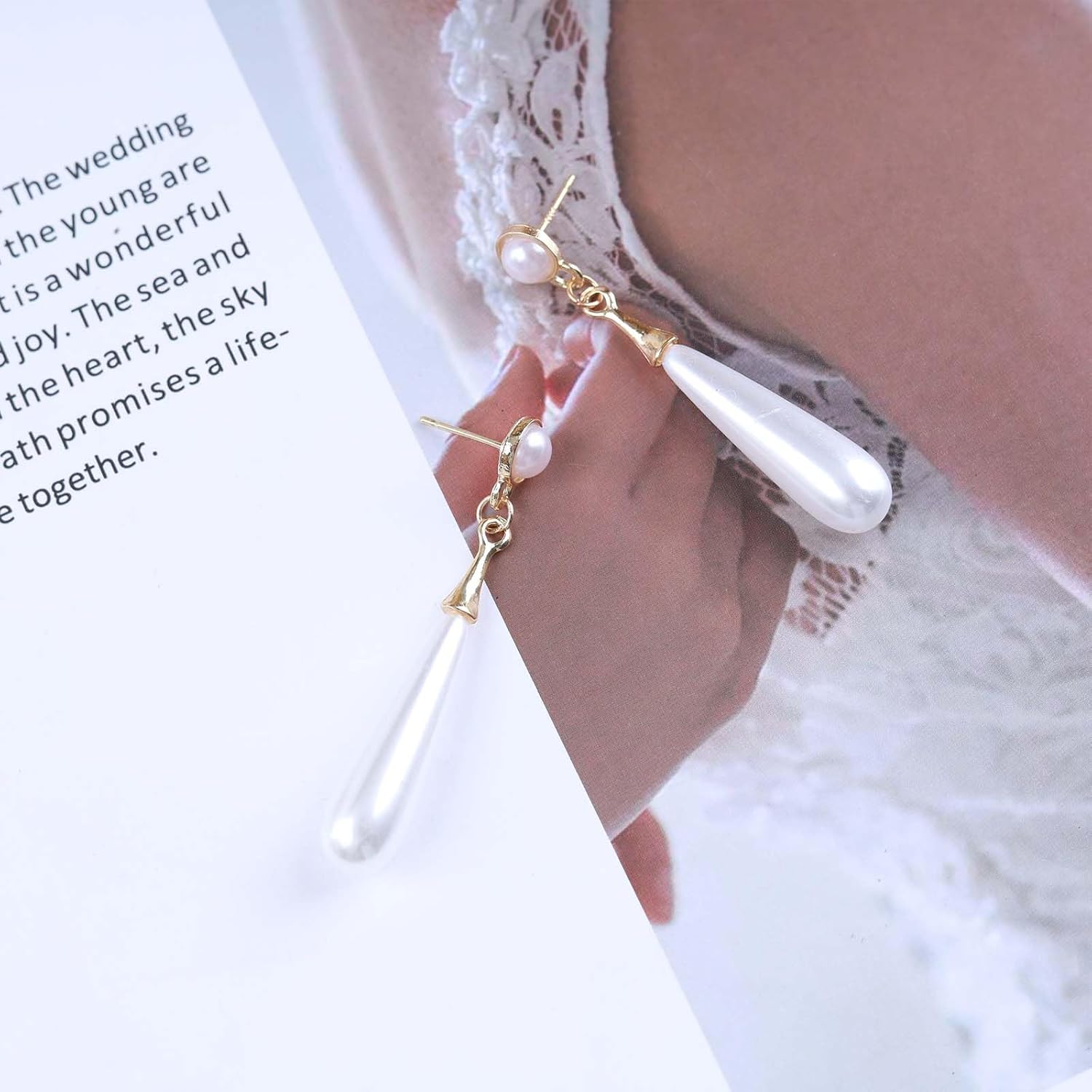 Boho Teardrop pearl Earrings Thin pearl Drop Earrings Gold Long pearl Dangle Earrings Vintage pearl Earrings Jewelry for Women and Girls