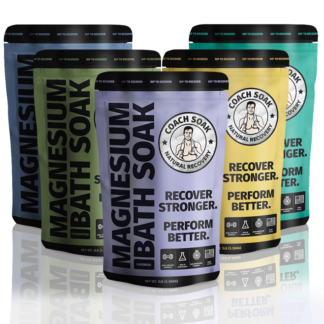 5 Pack Bundle: Coach Soak Recovery Bath Soak, Epsom Salt Bulk, Bath Salts Bulk, 5 Pack Bundle - Total of 15 Pounds (Mixed Bundle)