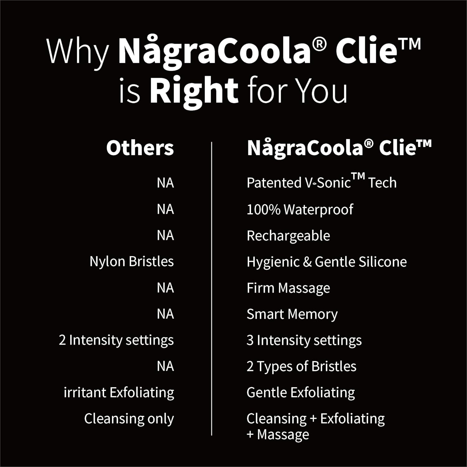 Silicone Face Scrubber, NågraCoola CLIE 2.0 Facial Cleansing Brush, Rechargeable, Waterproof Face Scrub Brush for Cleansing, Exfoliating, Massaging, Electric Facial Exfoliator for Women & Men - Black