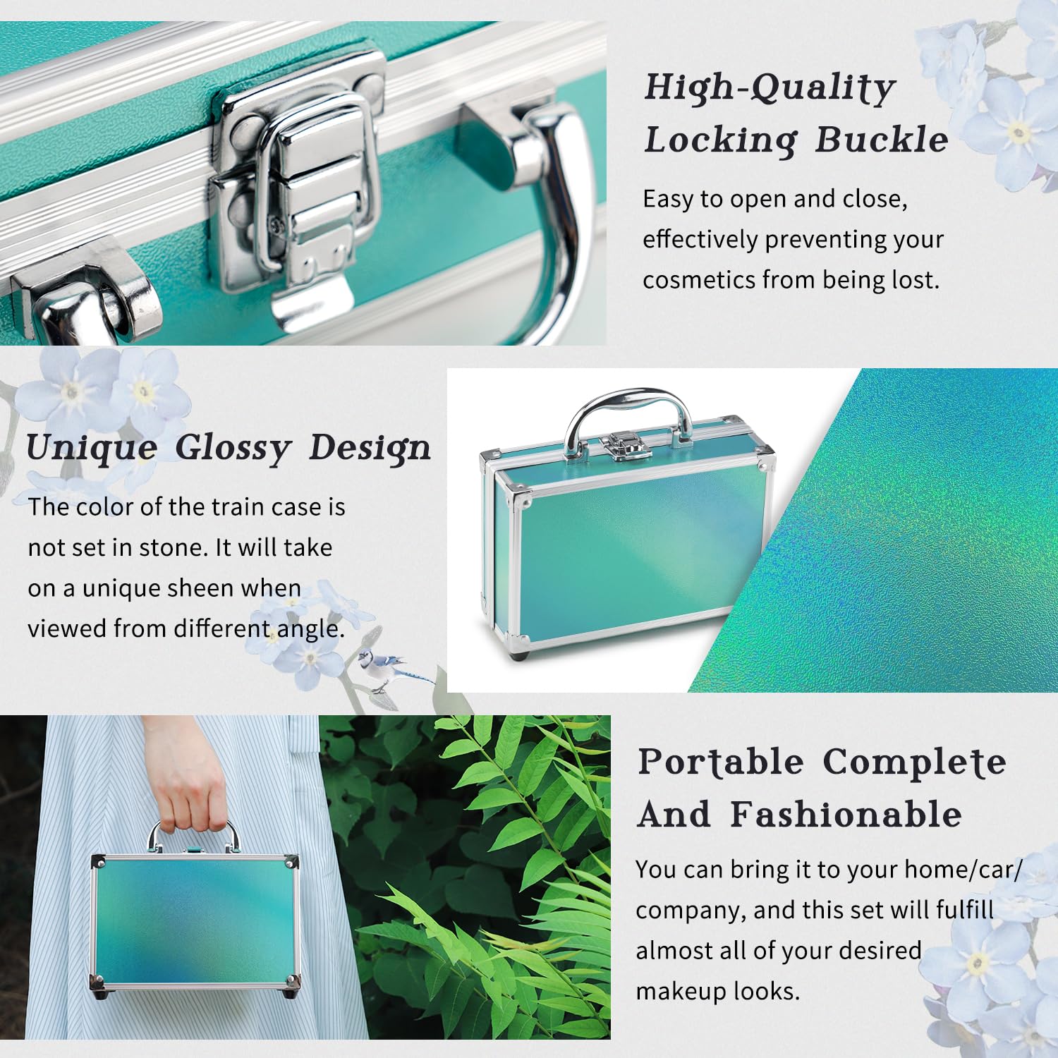 Color Nymph Beginner Makeup Kits For Teens With Train Case Included Full Makeup Kit Eyeshadow Palette Blushes Bronzer Highlighter Lipstick Brushes Mirror (Green)
