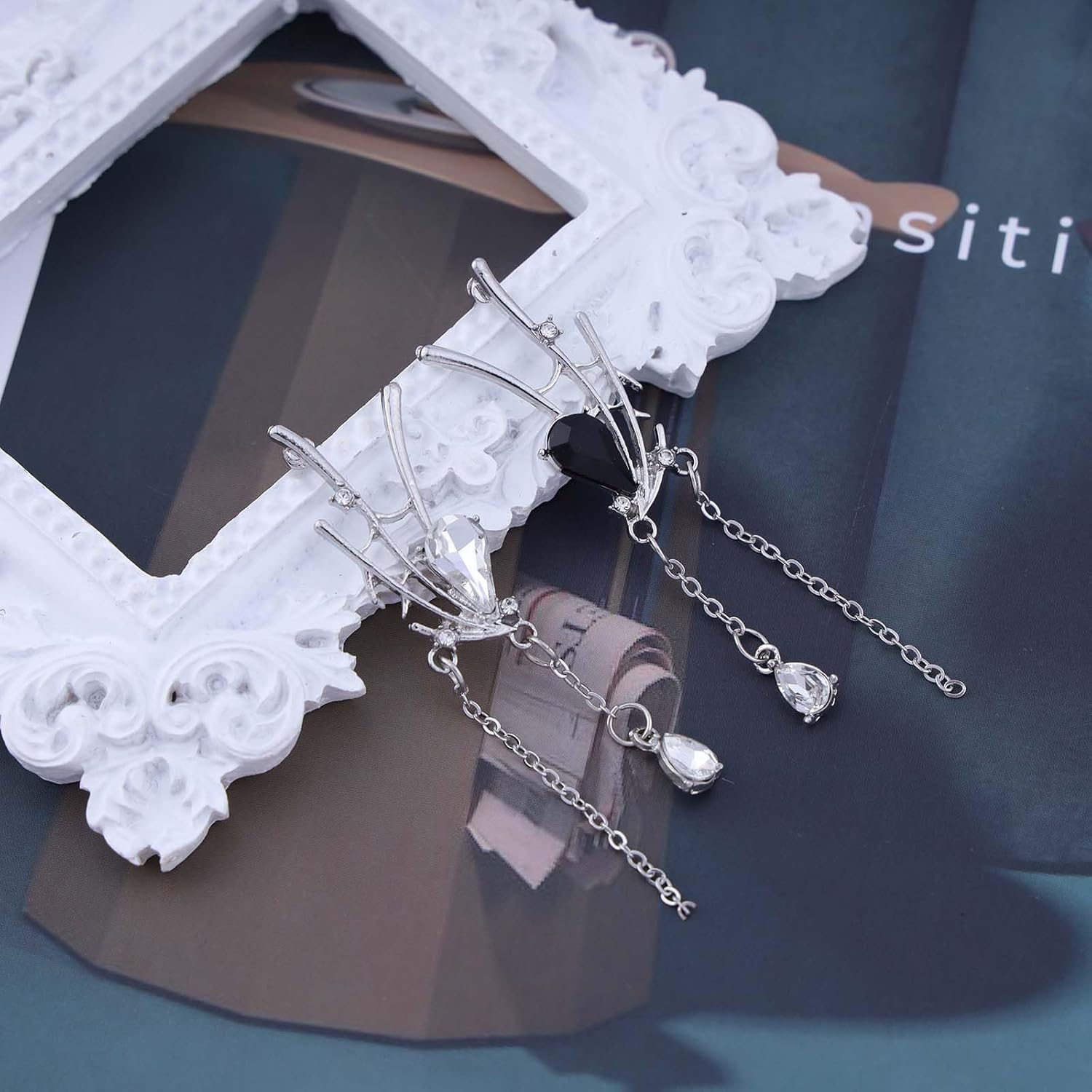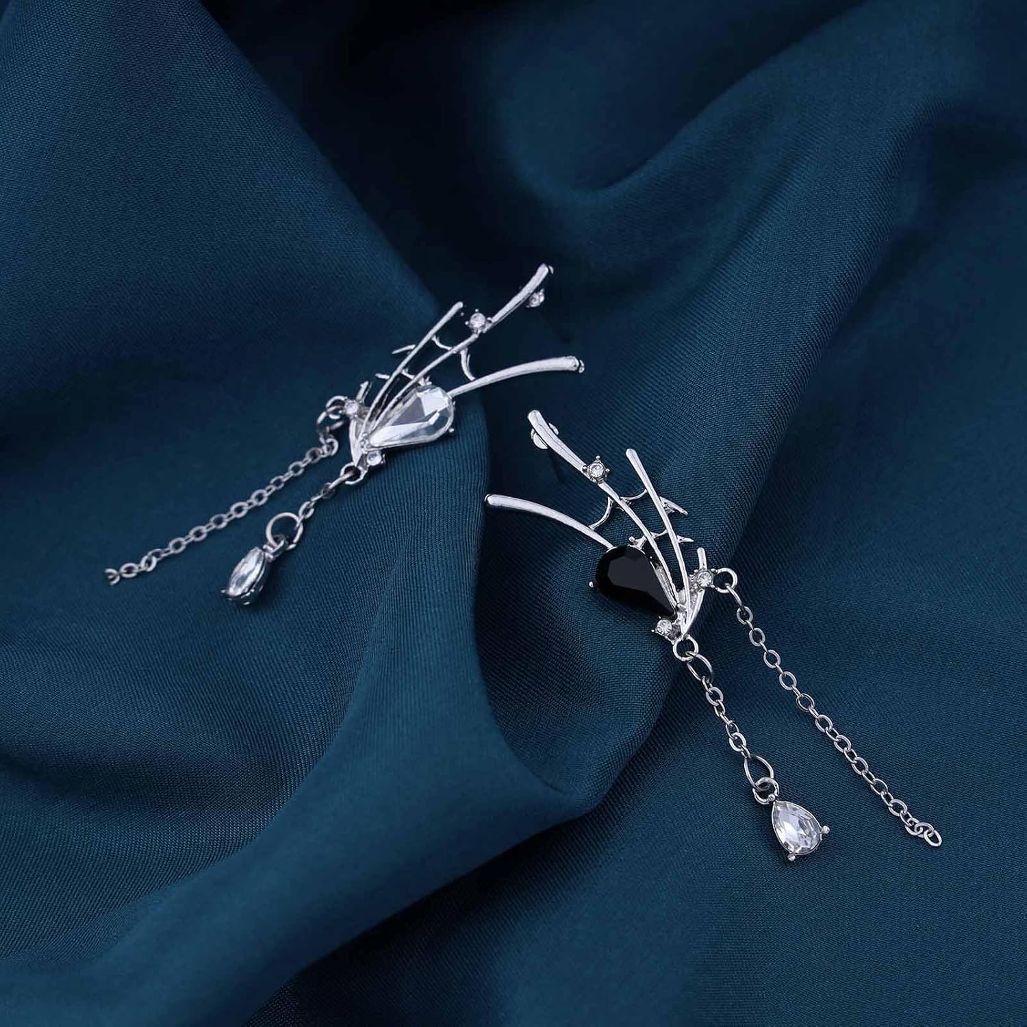 - Crystal teardrop drop earrings.Item Details:Handmade Item.Size:As Shown.Color:Silver.Materials:Quality Alloy/Crystal.Location:Ear.Style:Boho/Vintage.
