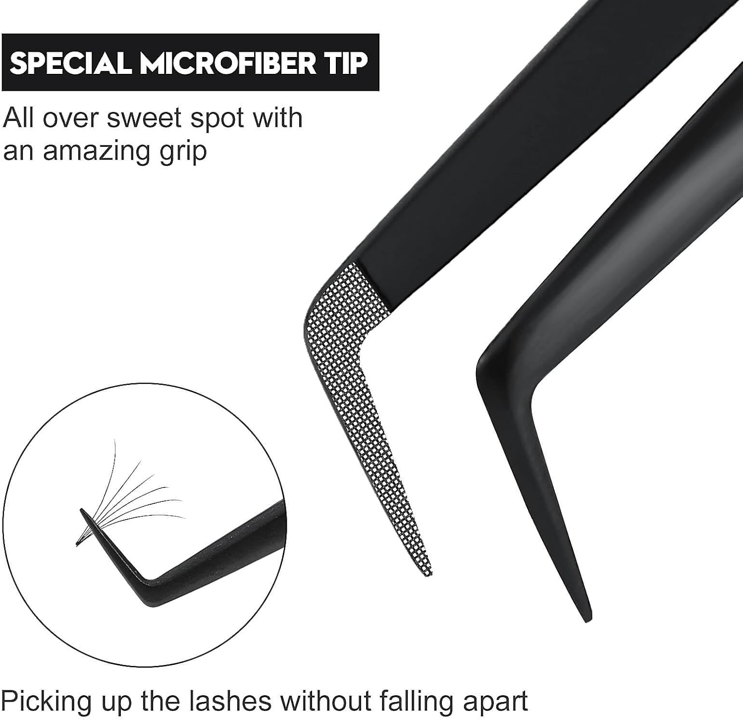 - ★FIBER TIP LASH TWEEZERS:Specifically designed with a microfiber tip Special microfiber tip—All over sweet spot with an amazing grip, picking up the lashes without falling apart.For professional lash artists use & beginner Friendly.
