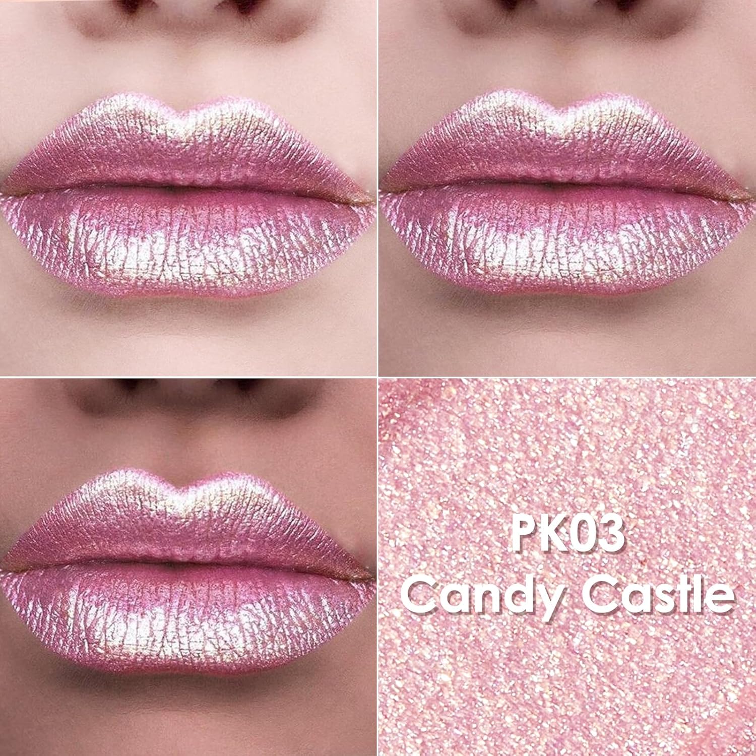 FOCALLURE Metallic Liquid Lipstick,Non Stick Cup Lip Gloss,High Impact Lip Color with Transfer-proof Wear,Long Lasting & Waterproof Lipstick Makeup for Women,PK03 Candy Castle