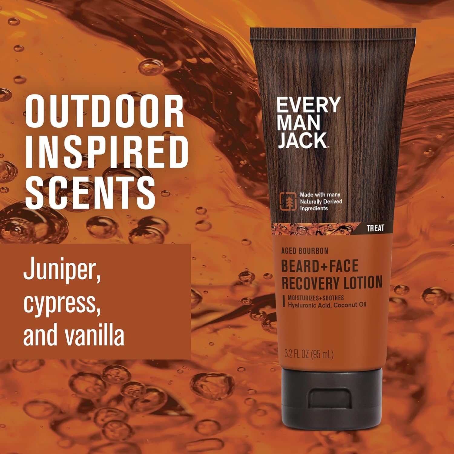 Every Man Jack Beard + Face Recovery Lotion - Moisturizes Relieves Dry Skin and Beard Itch - Light Aged Bourbon Scent - Made w/Naturally Derived Ingredients like Coconut Oil, and Witch Hazel - 3.2 oz (2 Pack)