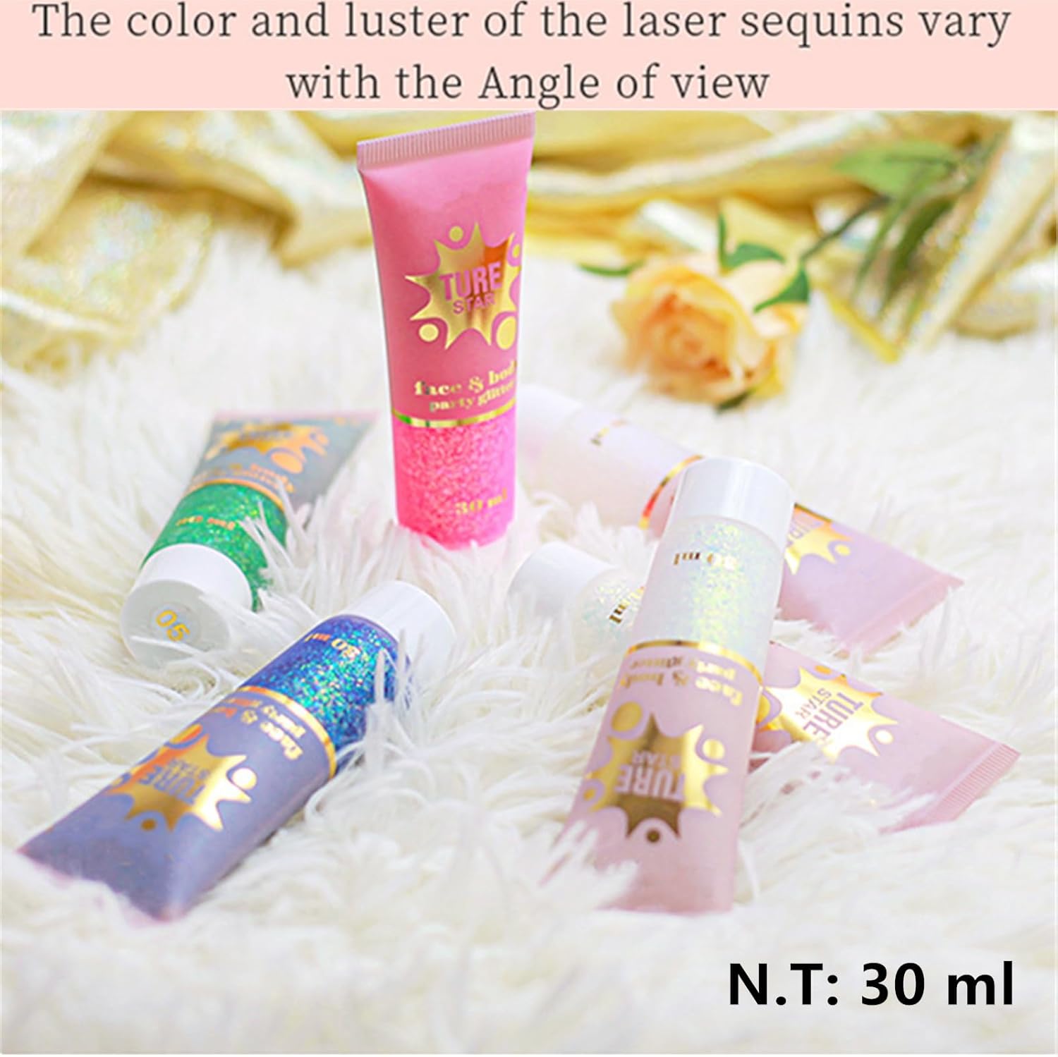 - 【Chameleon Rose Pink Face Body Glitter Holographic Effect】Our Face Body Glitter Blends with plenty of different shapes and sizes of chunky and fine glitters in a gel base,have a chameleon 2-3 colors wtih a holographic effect.The mermaid sequin glitters have vibrant color,which shows up as an ultra-reflective and shiny sparking shimmer smear.