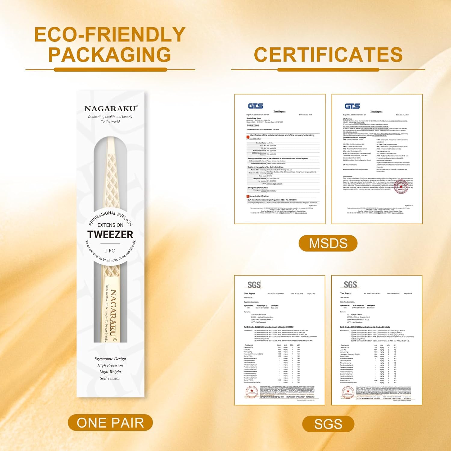 NAGARAKU Precision Fiber Tip Grip Tweezer for Eyelash Extensions Diamond Handle Anti-Static Anti-Slip Premium Gold Stainless Steel Eyelashes Tweezers Supplies with Box(C Curved Tip Tweezer AG-04)