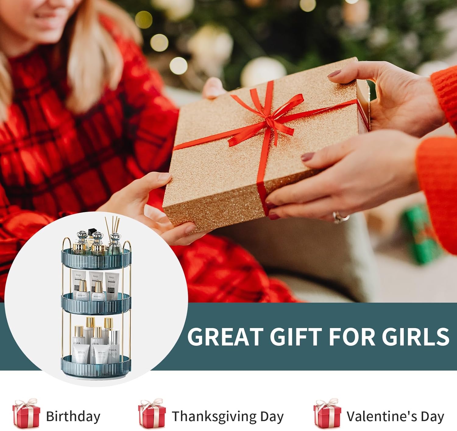 - 🎀【Multi-occasion uses】This turntable organizer can be used as: a perfume holder organizer, bathroom organizer countertop, nail polish organizer, dresser organizer countertop, skin care organizer, spice racks, fruit case, etc. The bedroom, bathroom, closet cabinet, kitchen, dresser, office, or countertop are good places to place it
