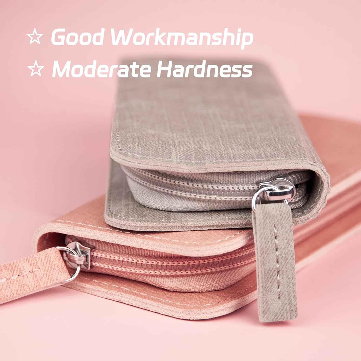 Lash Tweezers Organizer, Eyelash Extension Tweezers Bag, Soft PU 5 Positions Portable Dustproof, Individual Zipper Storage Case Box for Tweezers, Makeup Brush, Slender Small Tools(Pink)