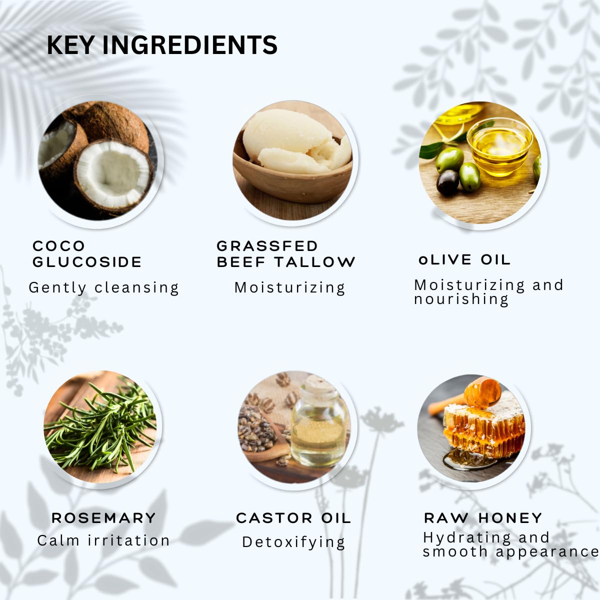 - MOISTURIZING: Grassfed beef tallow, Argan oil & Castor oil keep your skin moisturized and nourished after washing.