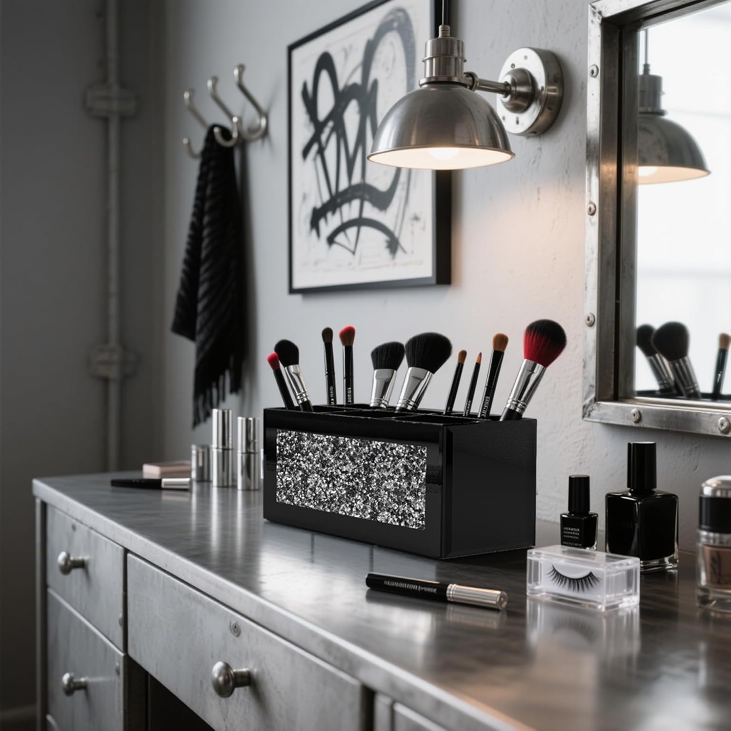 - Multiple Slot and Color Choices: With 6 slots available, this makeup organizer allows for easy sorting of your beauty tools. Choose from the classic silver or the bold black finish to match your decor. This holder enhances both the functionality and style of your bathroom or vanity.