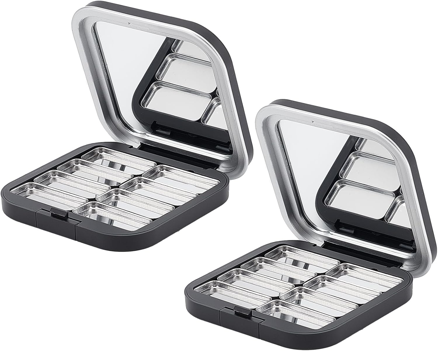 - PACKAGE & SIZE: The package includes 2 pieces of empty eyeshadow palettes, providing sufficient quantity to meet your various needs or share with friends. Each eyeshadow box measures about 7.5x7.5x1.4cm.