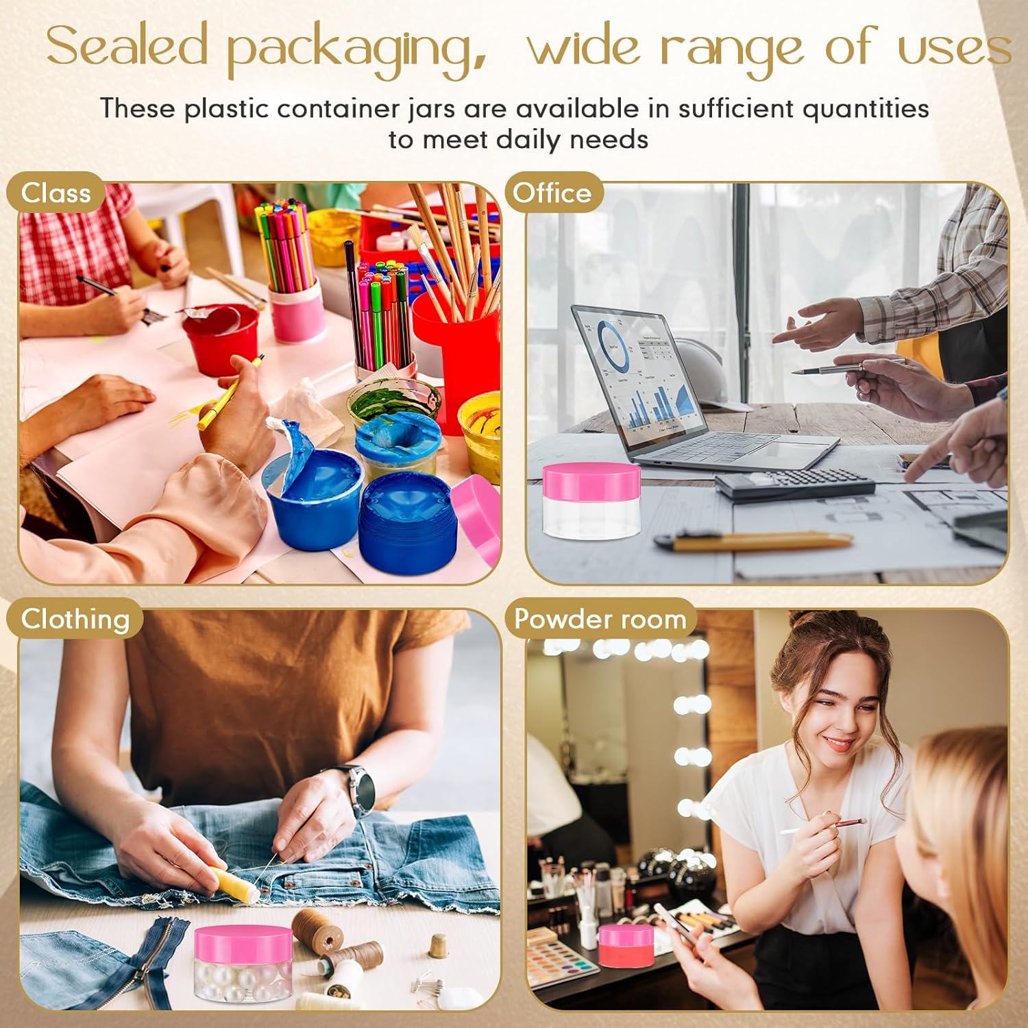 - Multifunctional Containers: you can use these plastic jar containers with lids to store your personal beauty products for travel, ideal to dispense; You can also use it to store homemade sugar scrub cream, body lotions, bath butter soap gifts, body butters and hair moisturizers, small and easily lost jewelry, small crafts like beads, seasonings, acrylic paints, flower seeds, rhinestones etc., which will keep your things organized and make your life more convenient