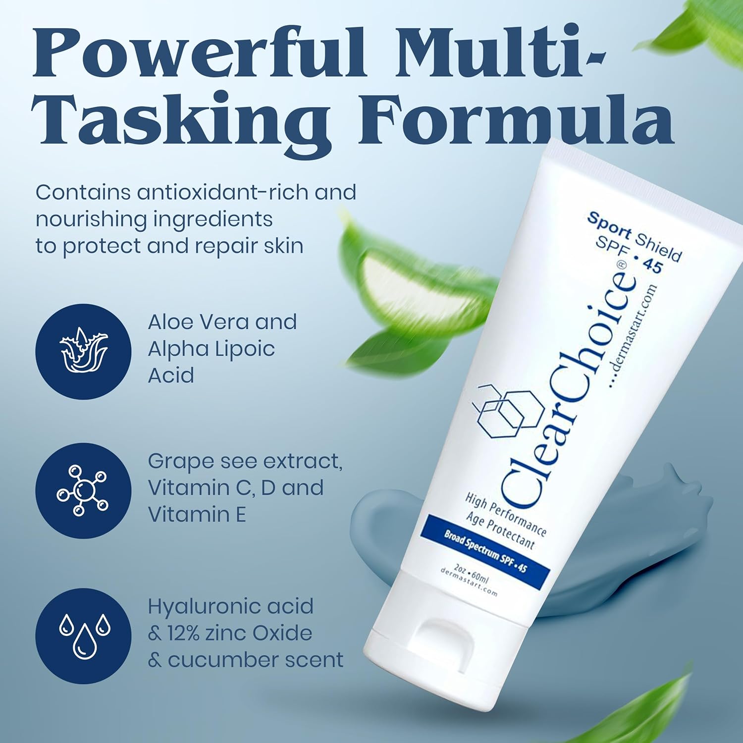 Clear Choice Travel Size Sunscreen for Face SPF 45, Mineral Oil Free Sunblock & Light Moisturizer with Zinc Oxide, Reef-Safe, Broad Spectrum, No White Cast, Dermatologist Recommended 2oz