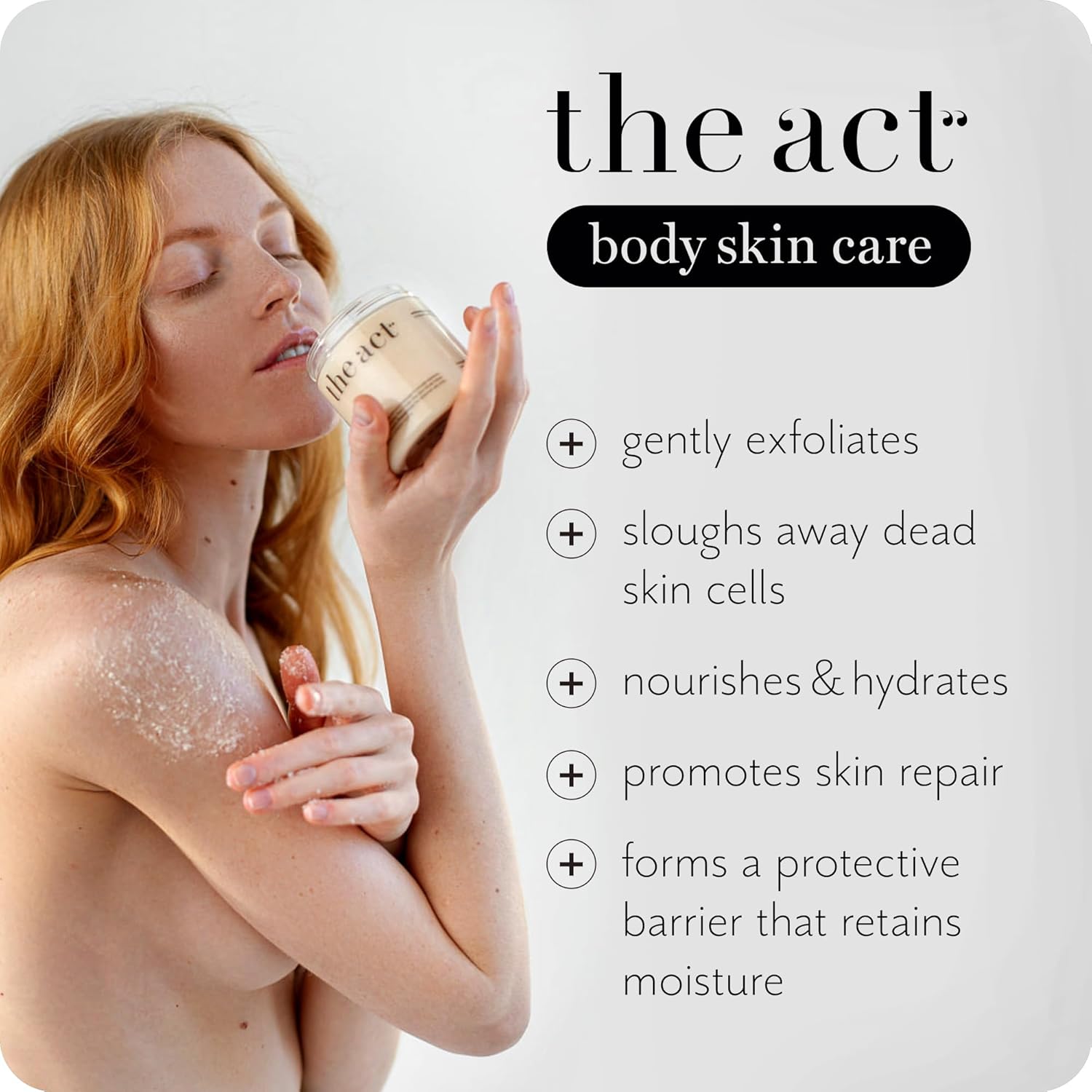 - š„„ Natural Coconut Body Scrub: The act exfoliating scrub features only natural ingredients, including coconut shavings and fine sea salt, which effectively remove dead skin cells, unclog pores, and facilitate the deep penetration of nourishing components.