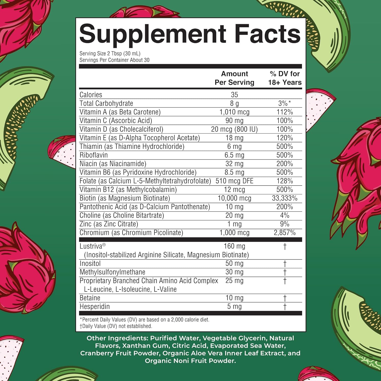 - WOMEN HAIR GROWTH SUPPLEMENT: Enjoy this delicious liquid multivitamin in a peach mango or dragon fruit melon flavor and receive all of these nutrients plus Lustriva for thicker, fuller hair in women with just two tablespoons per day!