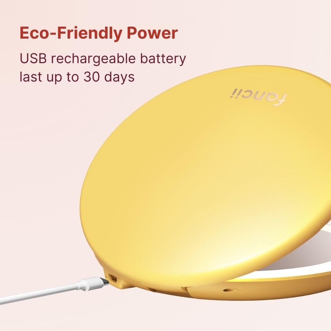 Fancii Taylor Travel Makeup Mirror with LED Light, Rechargeable, 10x /1x Magnifying, Tru-Glow Lighting System, XL Large 5” Wide | Compact Mirror for Purses (Marigold)