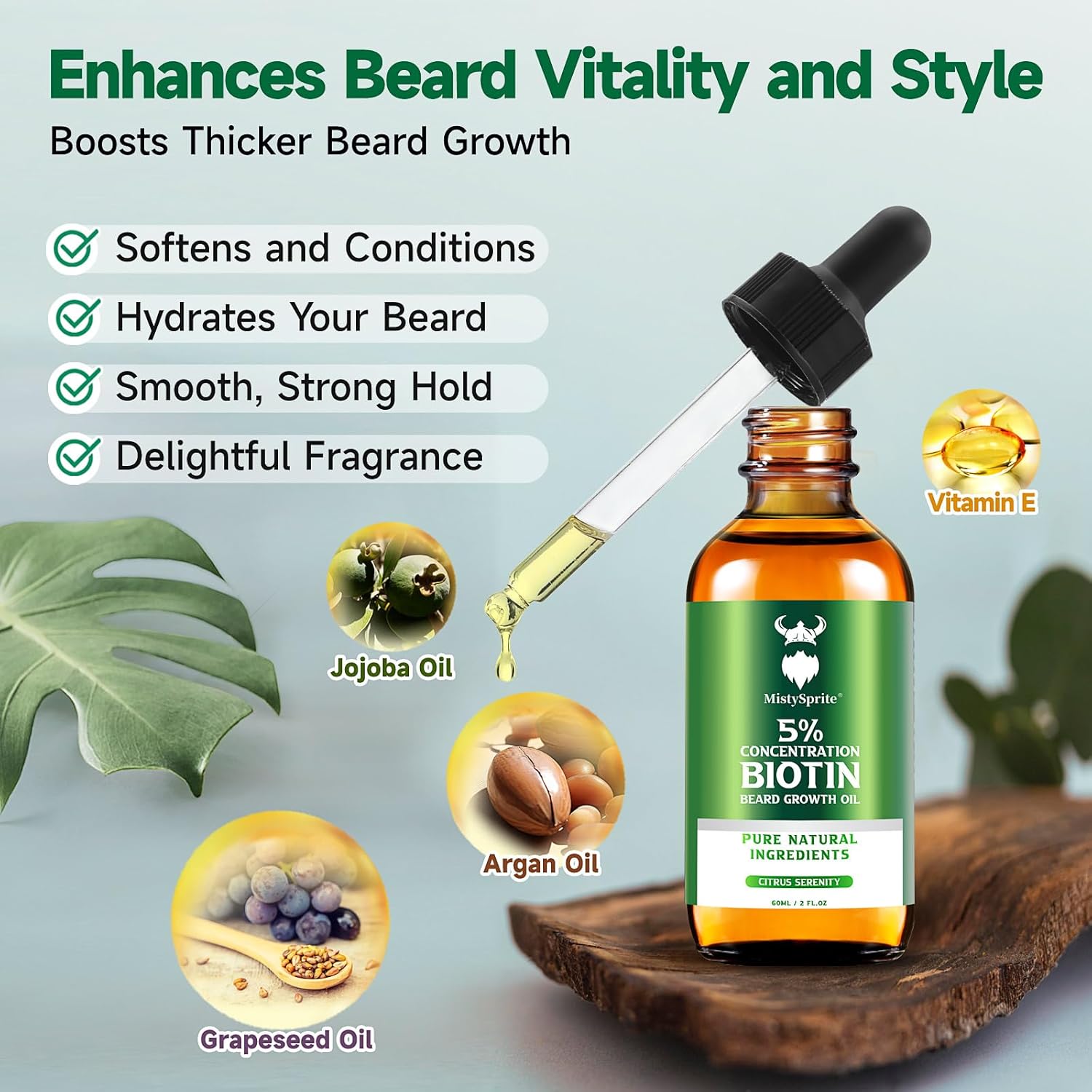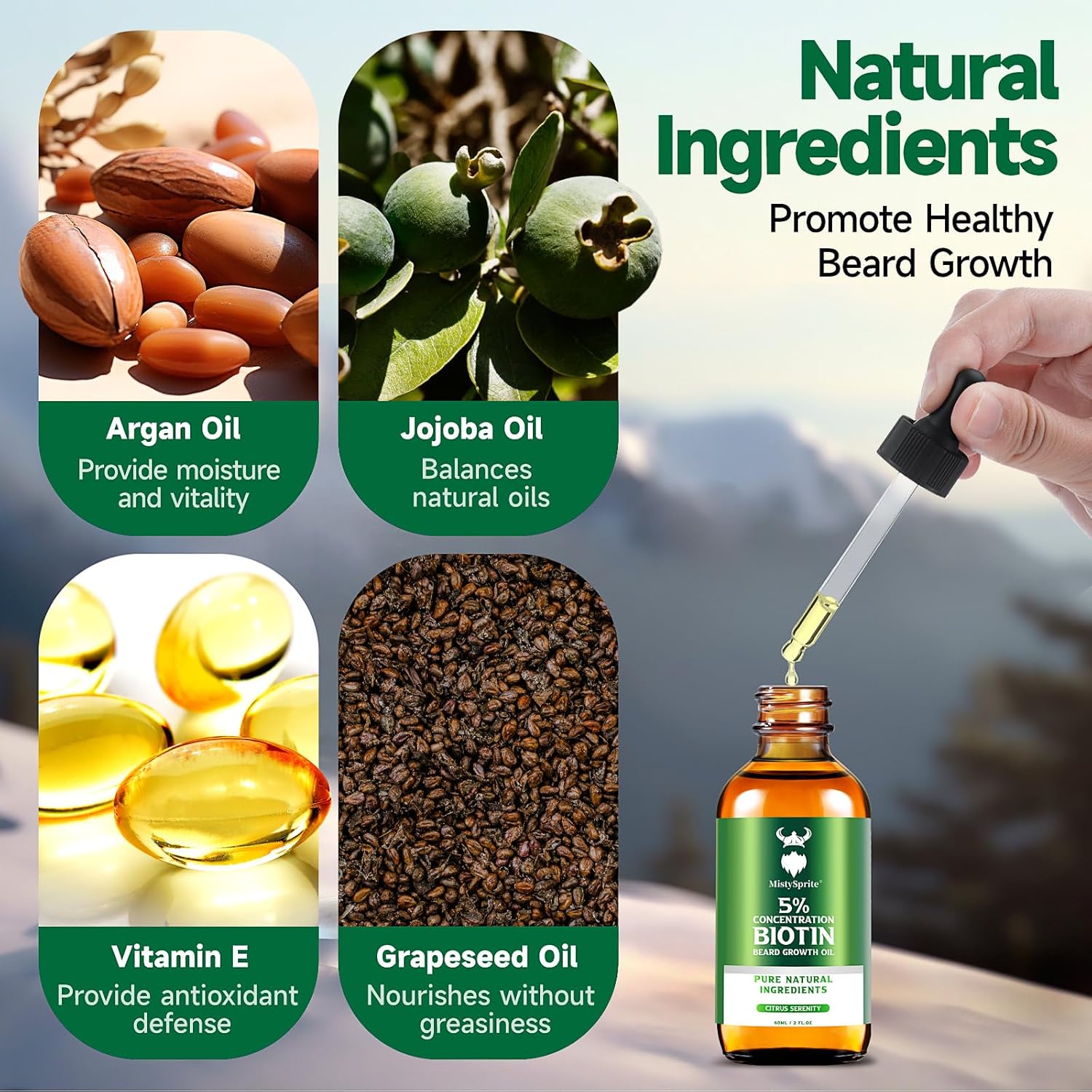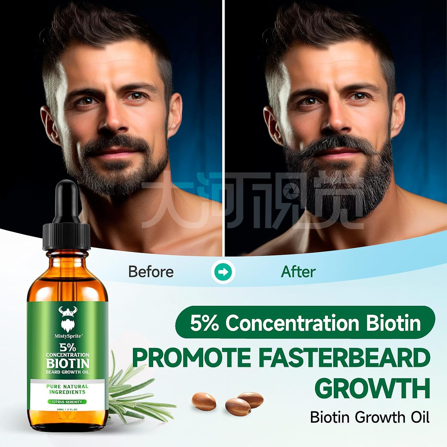 - 5% Biotin Pinnacle Concentration: Golden molecule ratio 5% of the biotin in the beard growth oil is the upper limit of the active essence - the highest effective concentration verified by the laboratory, one point less is ineffective, one point more stimulation, aerospace-grade penetration system - nano-sized carrier precision delivery of nutrients, every drop directly to the hair follicle stem cells