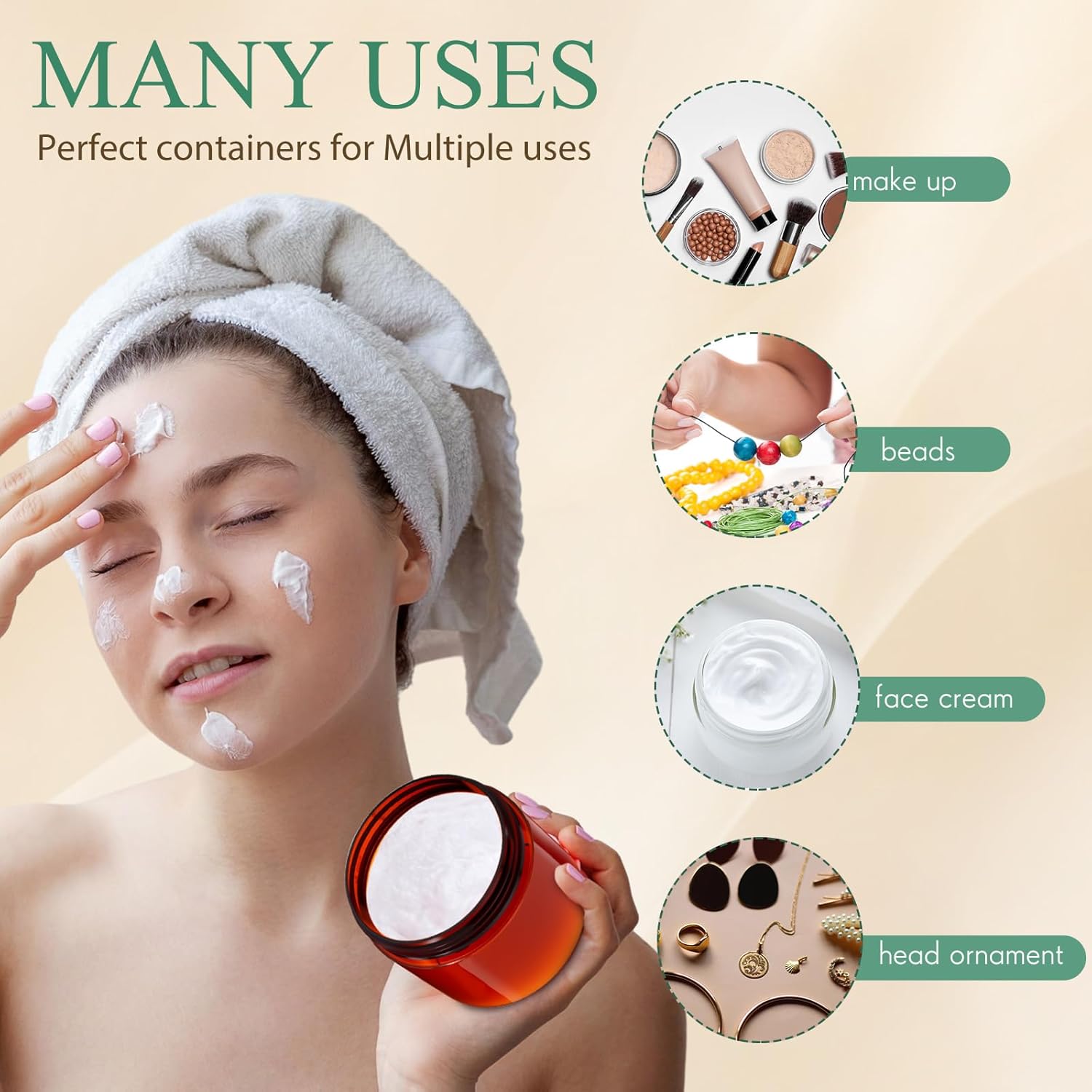 - Multifunctional Containers: you can use these plastic jar containers with lids to store your personal beauty products for travel, ideal to dispense; You can also use it to store homemade sugar scrub cream, body lotions, bath butter soap gifts, body butters and hair moisturizers, small and easily lost jewelry, small crafts like beads, seasonings, acrylic paints, flower seeds, rhinestones etc., which will keep your things organized and make your life more convenient