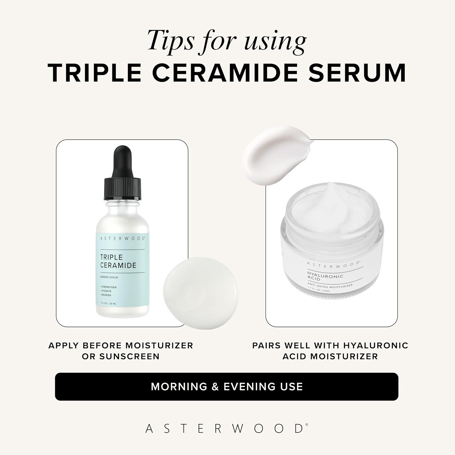 Asterwood Triple Ceramide Barrier Repair Serum - Hydrating, Calming, & Barrier-Restoring Skin Facial Serum - with Ceramide Complex, Squalane, Hyaluronic Acid - Fragrance-Free, Cruelty-Free - 1 Fl Oz