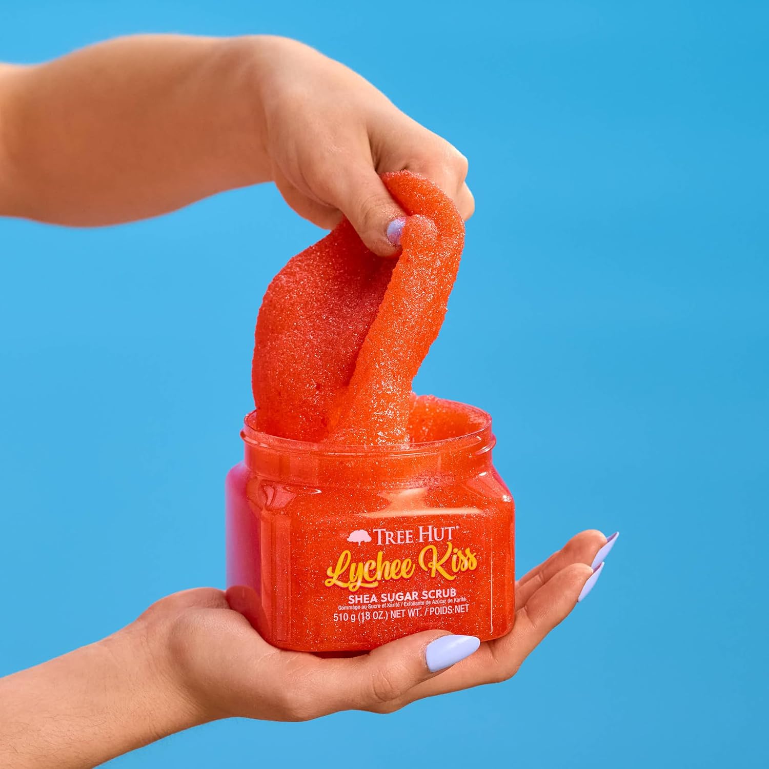 Tree Hut Lychee Kiss Shea Sugar Scrub | Exfoliating Body Scrub Removes Dead, Dry Skin for a Soft & Hydrated Feel | Nourishing Essential Body Care | 18 fl oz.