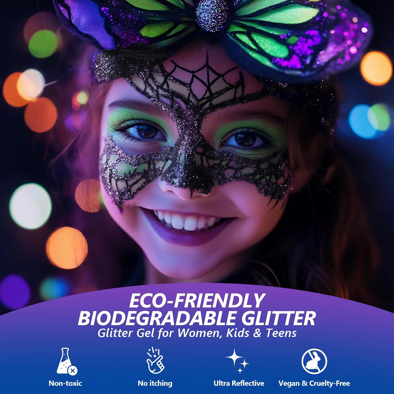 - Eco-Friendly Glitter: This super sparkly glitter contains no harmful chemicals, is safe for skin, and breaks down in the environment, ensuring the highest quality of the product