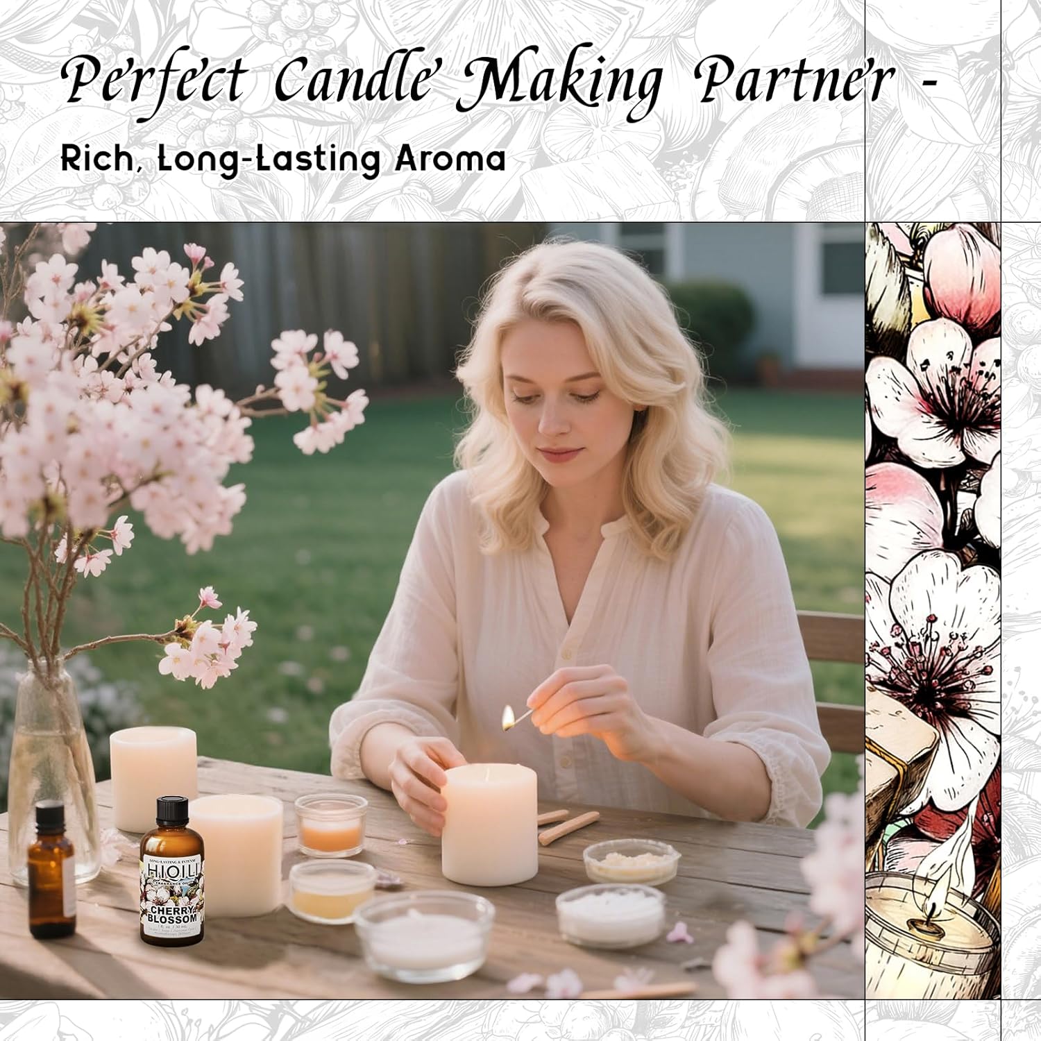 HIQILI Cherry Blossom Fragrance Oil, Floral Perfume Oil, Candle Scents for Candle Making, for Diffuser & Fresh Spray, Long-Lasting Scent - 1 Fl Oz