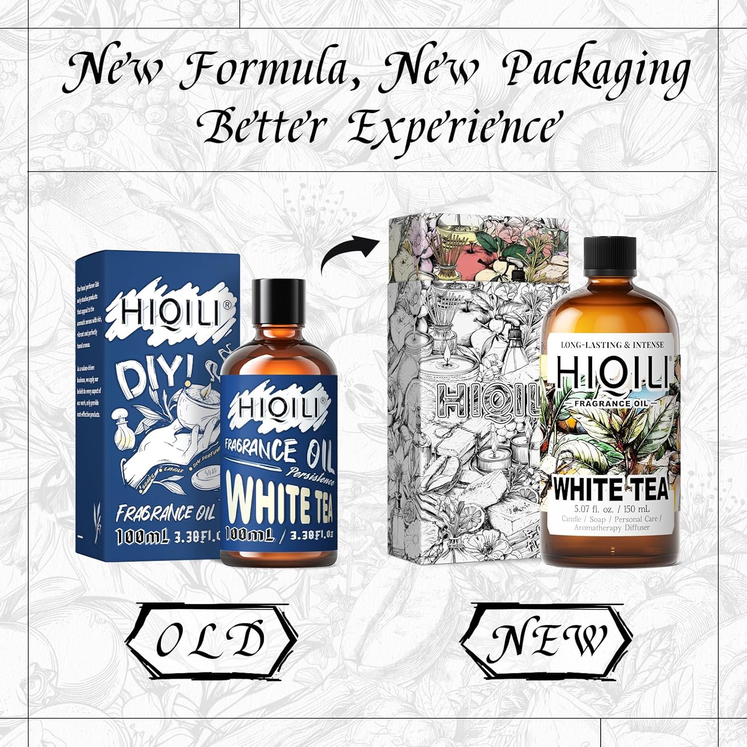 HIQILI White Tea Fragrance Oil for Essential Oil Diffuser, DIY Candle & Soap Making, Blend to Perfume & Air Freshener Spray - 5.07 Fl Oz