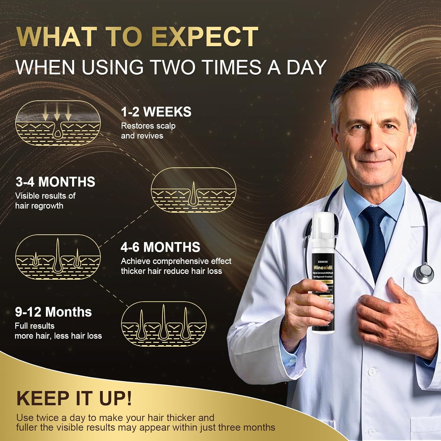 - ăVisible Results in 8â12 Weeksă: Minoxidil foam stimulates hair regrowth, while Biotin Hair Tonic delivers essential nutrients for thicker, fuller hair. Suitable for both men and women, it boosts hair density by over 35% after three months of use.