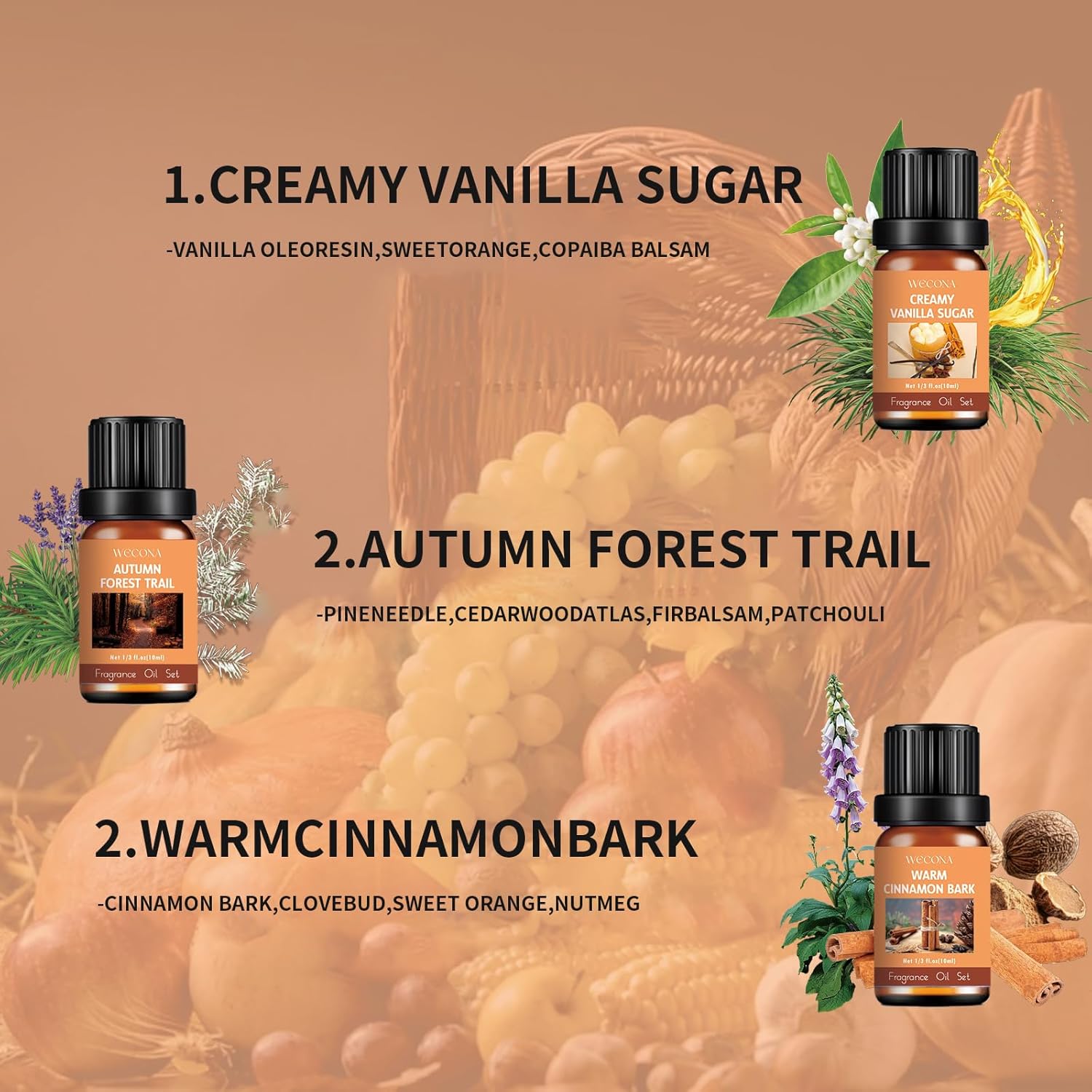 - Pure Plant Extracts , Safe & Healthy: Our Fall Essential Oils Set features pure plant extracts. Each essential oils is crafted from natural ingredients, ensuring a clean and safe aroma experience ideal for home, office, or outdoor use