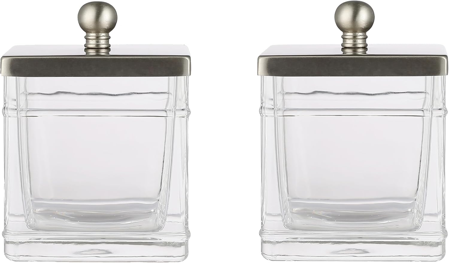 Glass Cotton Jar Holder 2 Pack– Satin Nickel Lid, Elegant Bathroom Storage Canister for Qtips, Cotton Balls, Floss, Makeup Organizer, Vanity & Bathroom Organization