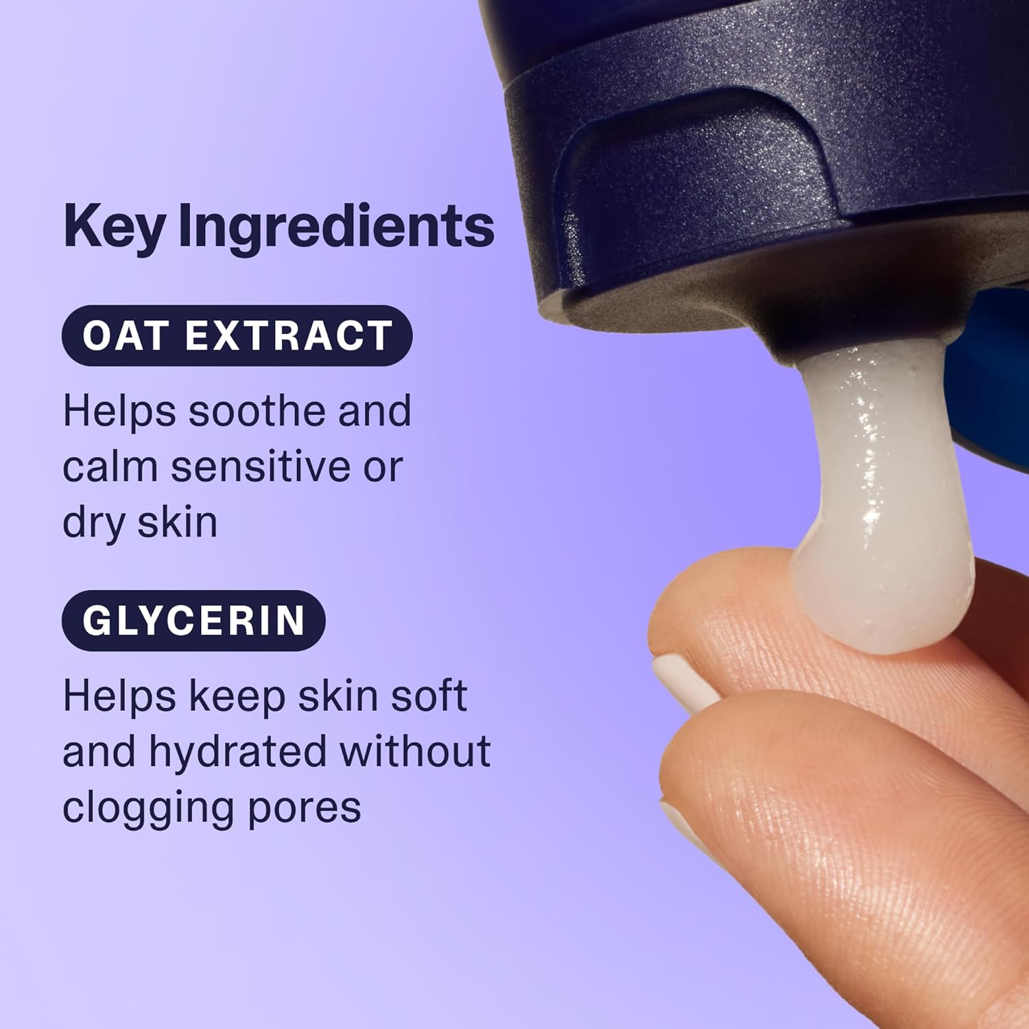 - GENTLE FACE CLEANSER – Lightly foaming gel formulated with hydrating glycerin and soothing oat extract that cleanses without stripping or clogging pores, leaving skin soft, calm, and smooth